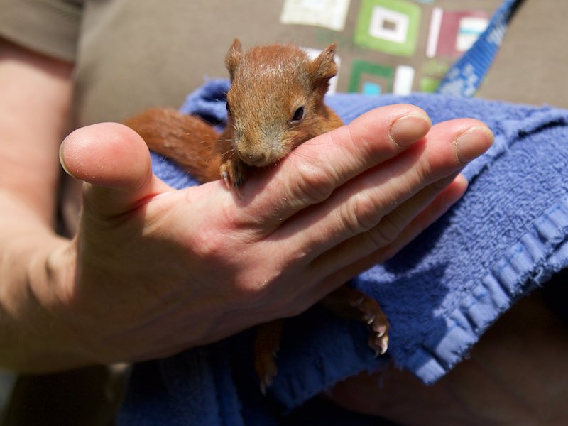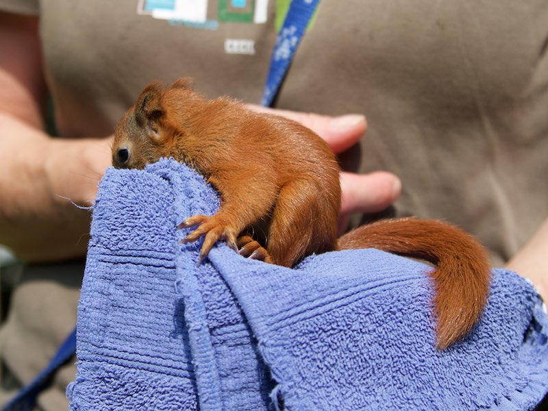 Verlassene Eichhörnchen müssen alle 2 Stunden sachgerecht gefüttert werden. Wir haben immer die entsprechende Ausstattung da, so dass man uns jederzeit anrufen kann, wenn man ein Eichhörnchen in Not findet (zu klein, unterkühlt, verletzt o.ä.).
