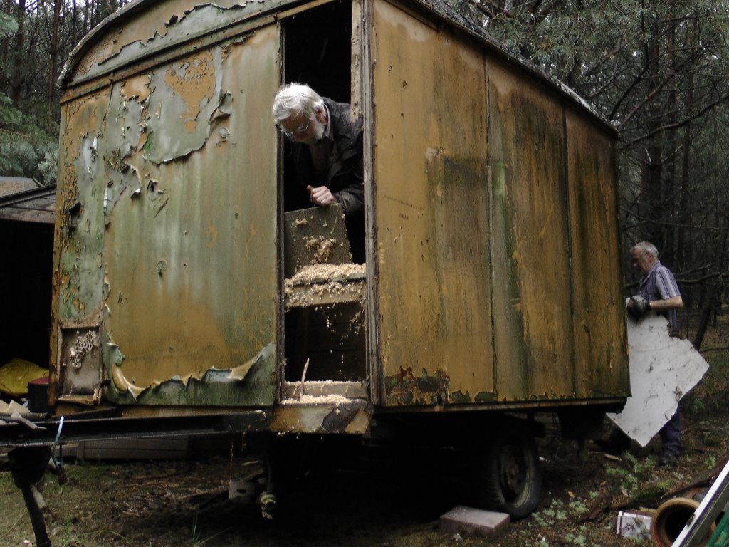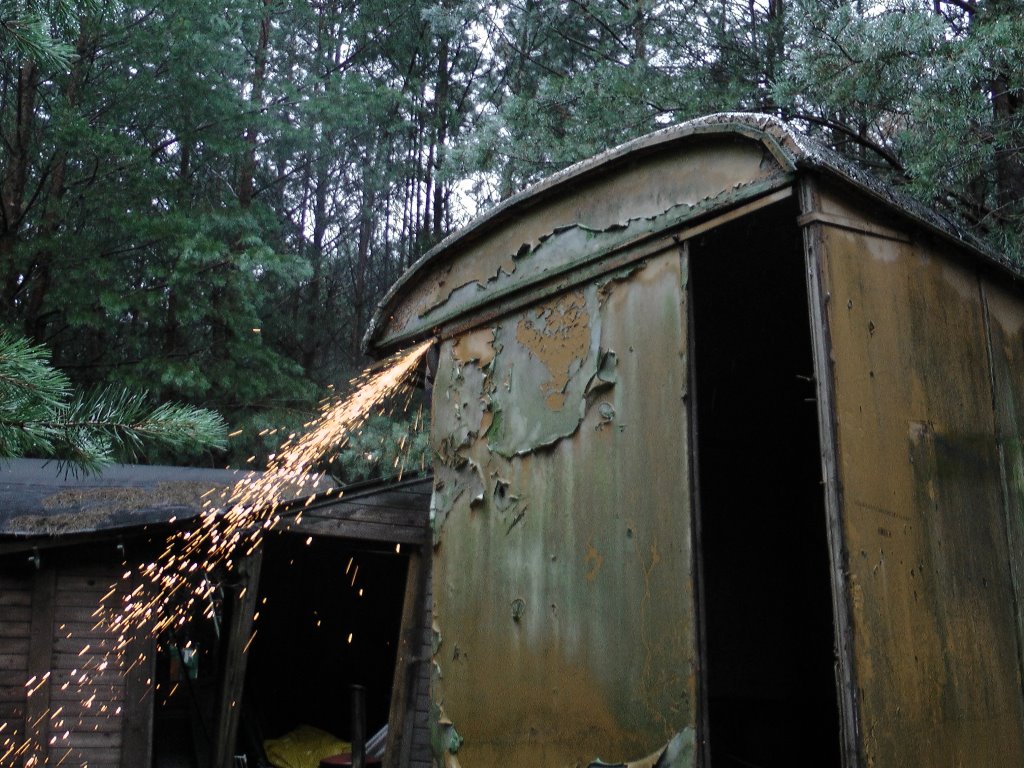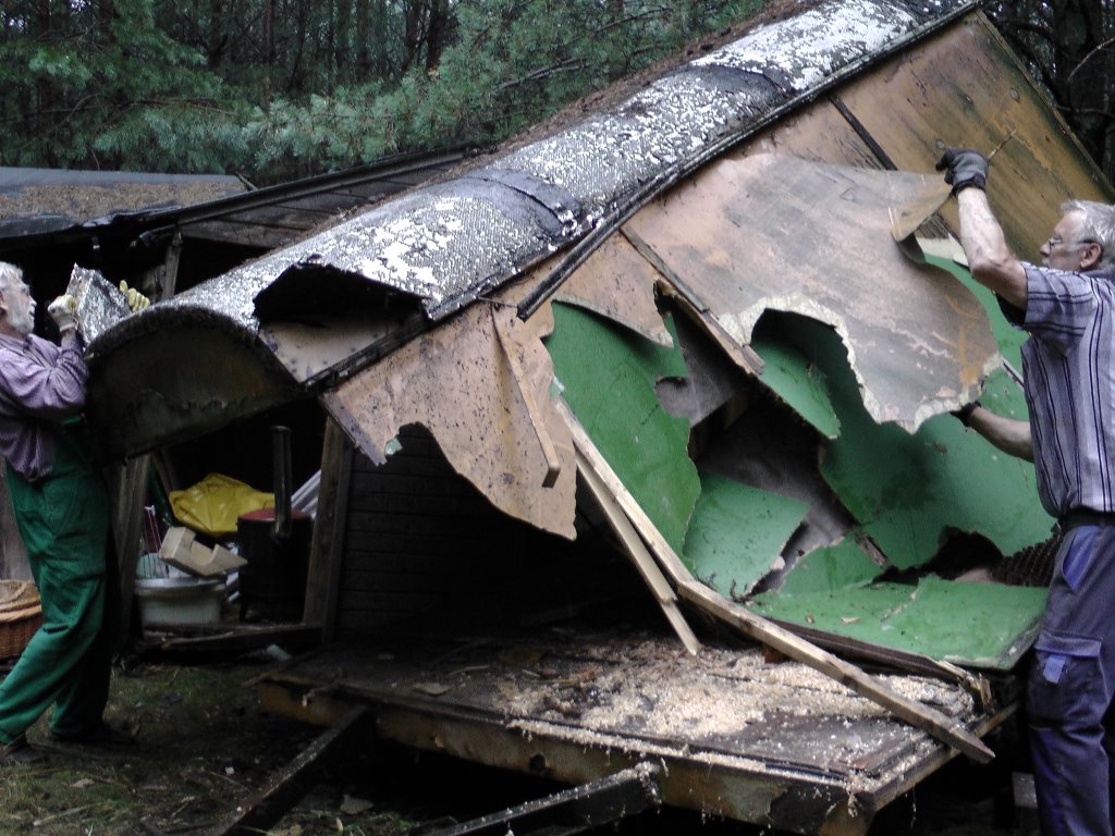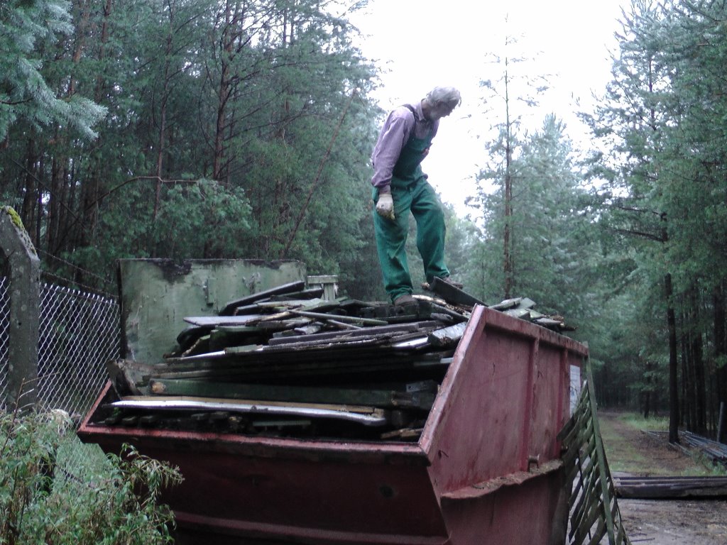 S3180044Einer der beiden Container, die wir bestellt hatten, ist schon voll. Wir haben einen alten Bauwagen zerlegt und zusammen mit anderen alten Holzabfällen den ersten Container gefüllt. Er wird morgen abgeholt und gegen einen leeren getauscht, denn für Sonntag (23.08.) ist noch so viel zu tun.