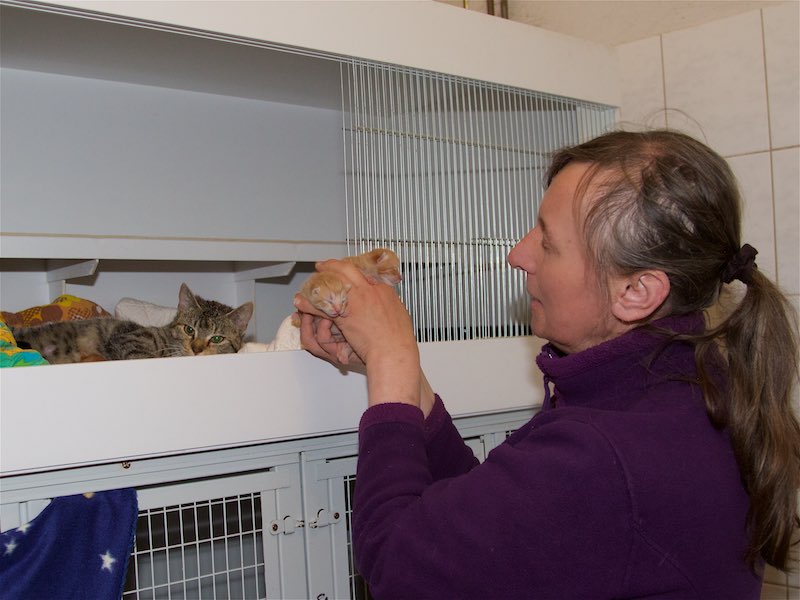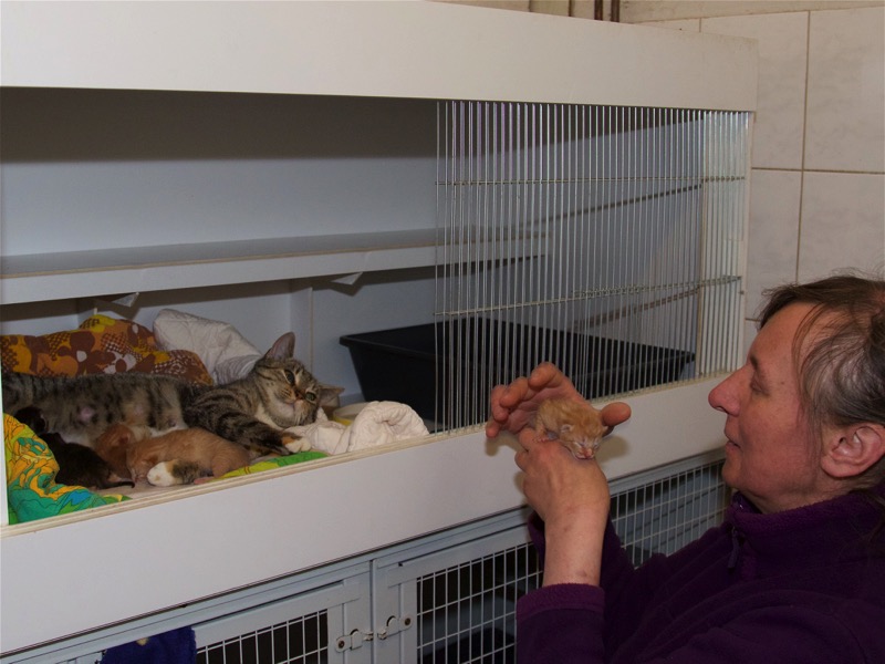 Unsere Jungkatzen stammen von Straßenkatzen, die nicht rechtzeitig zur Kastration bei uns abgegeben wurden. Wir versorgen die Mütter und Kitten, bis sie kastriert werden können. Alle Jungkatzen gehen danach in die Vermittlung. Die Mütter versuchen wir zu sozialisieren und dann ebenfalls zu vermitteln. Wenn sie so wild sind, dass alle Versuche fehlschlagen, gehen sie kastriert an den Auffindeort zurück.