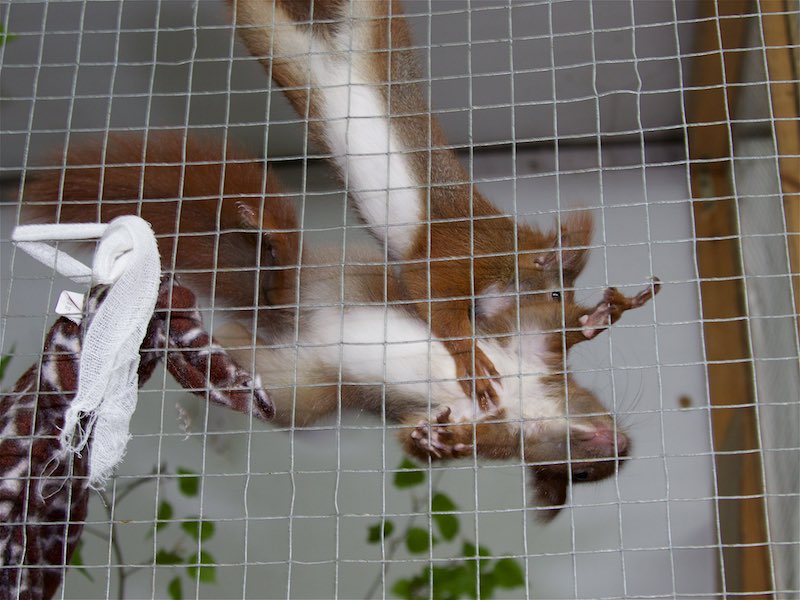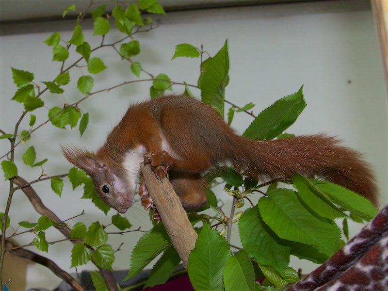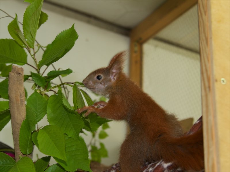 Dank der rührenden Fürsorge unserer Tierpflegerin Liane und weiterer Mitarbeiter sind die beiden Eichhörnchendamen Wiebke und Jannika zu fitten und flinken Kletterern herangewachsen.Sie können jetzt in große Auswilderungsvolieren umziehen und dann bald in die Freiheit entlassen werden.