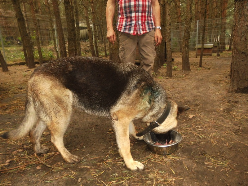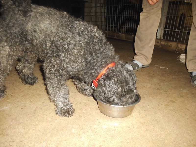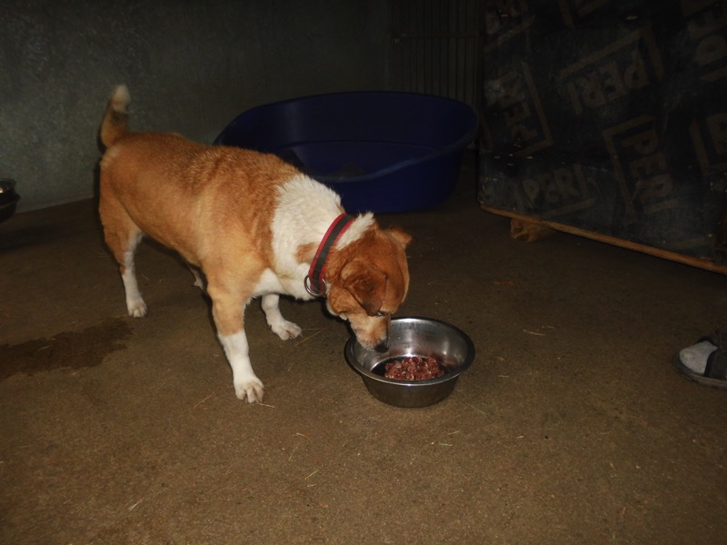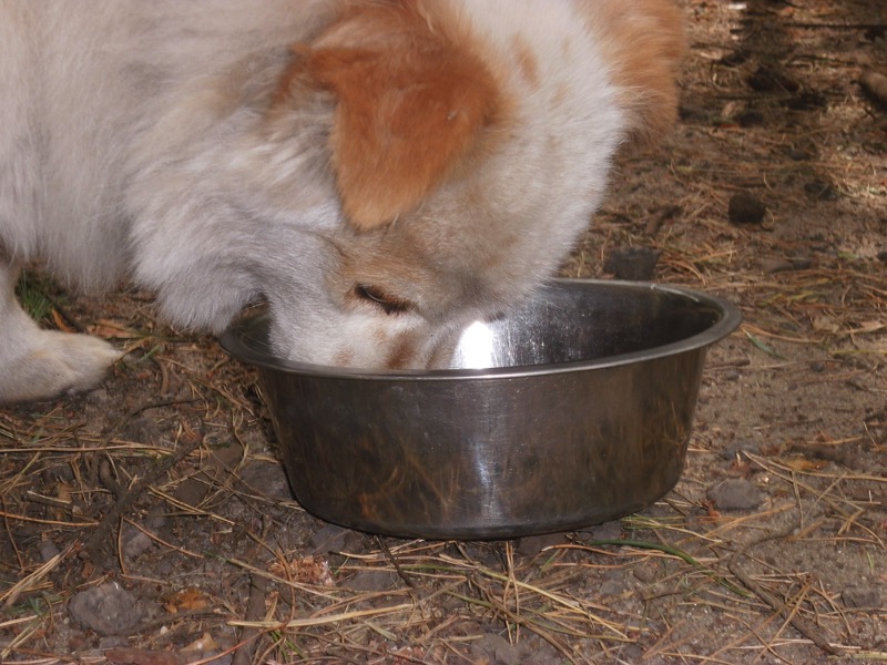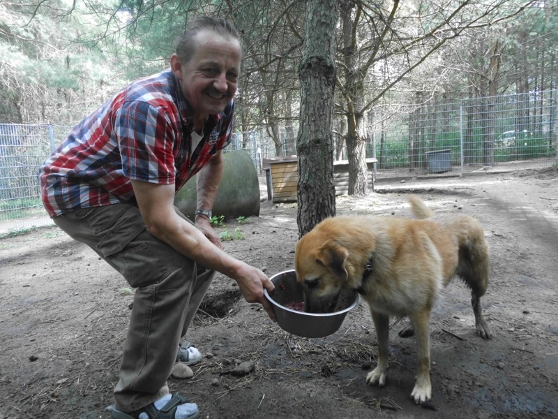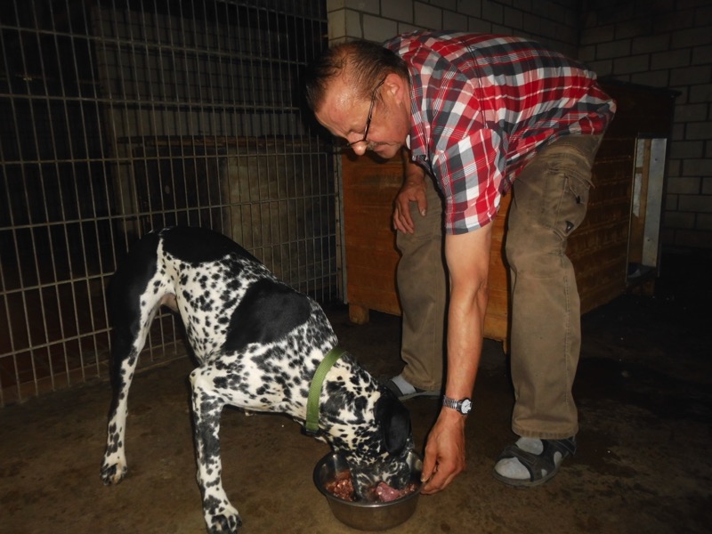 Bei 70 Hunden bekommt dann jeder ein Schmankerl oben auf das Trockenfutter und die älteren und kränklichen werden bevorzugt und erhalten eine ganze Schüssel.