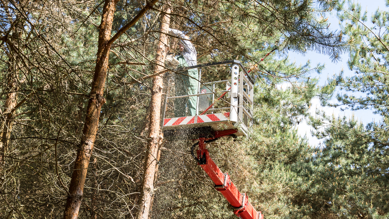 Teilweise waren Bäume in die Freileitungen gewachsen. Einige waren völlig vertrocknet, manche umsturzgefährdet. Durch den Sandboden und die große Trockenheit aufgrund des Klimawandels in den letzten Jahren verlieren die Bäume ihren Halt.