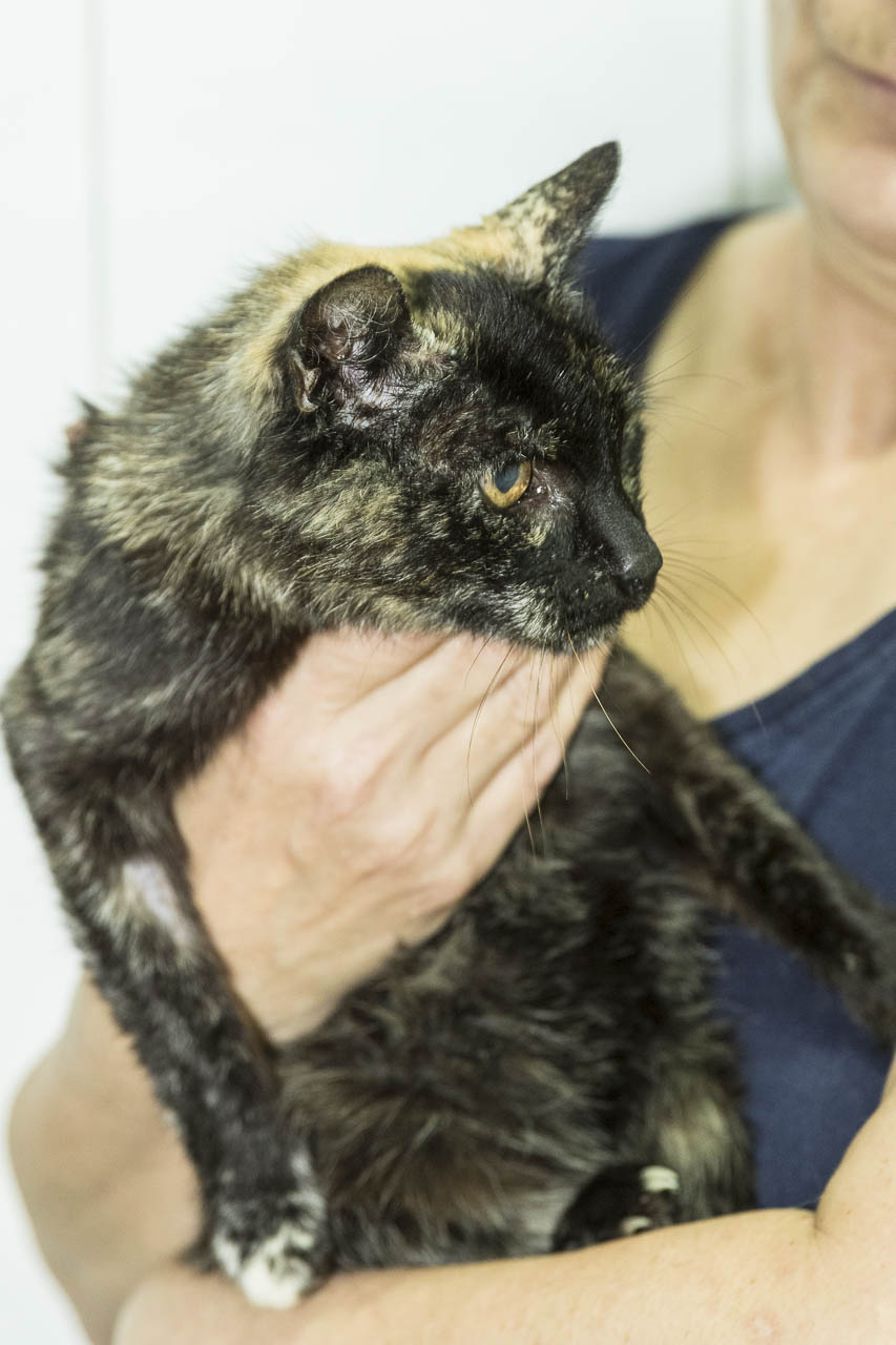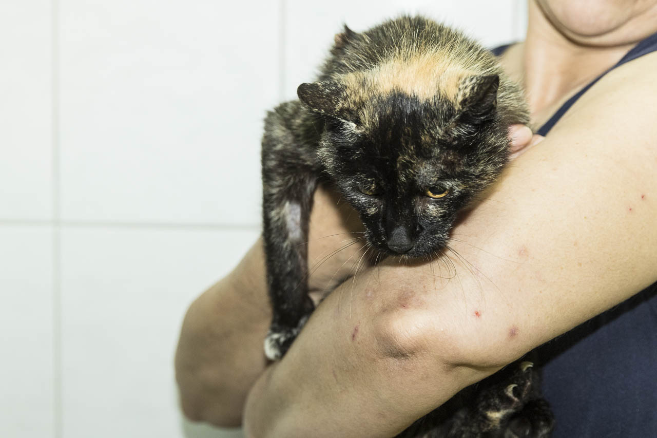 Sie war völlig abgemagert, wirklich klapperdürr. Laut unserer Tierärztin ist sie steinalt. Sie fürchtete schon, dass es auf's Einschläfern hinausläuft. Aber natürlich versuchen wir immer erst, ob wir das Tierchen wieder auf die Beine bekommen.