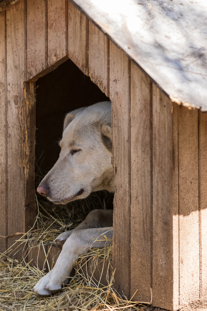 Wir wussten, dass es nicht einfach werden würde mit Gerry. Doch als er eintraf, zeigte er sich noch ängstlicher, als wir erwartet hatten. Er wurde panisch, wenn Menschen sich näherten. Wir ließen ihn mit Hündinnen gemeinsam leben in der Hoffnung, er schaut sich etwas ab. Und wir gaben ihm viel Zeit. Nach den ersten Wochen begannen wir vorsichtig, ihn daran zu gewöhnen aus der Hand gefüttert zu werden und die Nähe des Menschen zu ertragen. Doch wollte man ihn am Halsband anfassen und anleinen, biss er sofort alles durch und flüchtete.