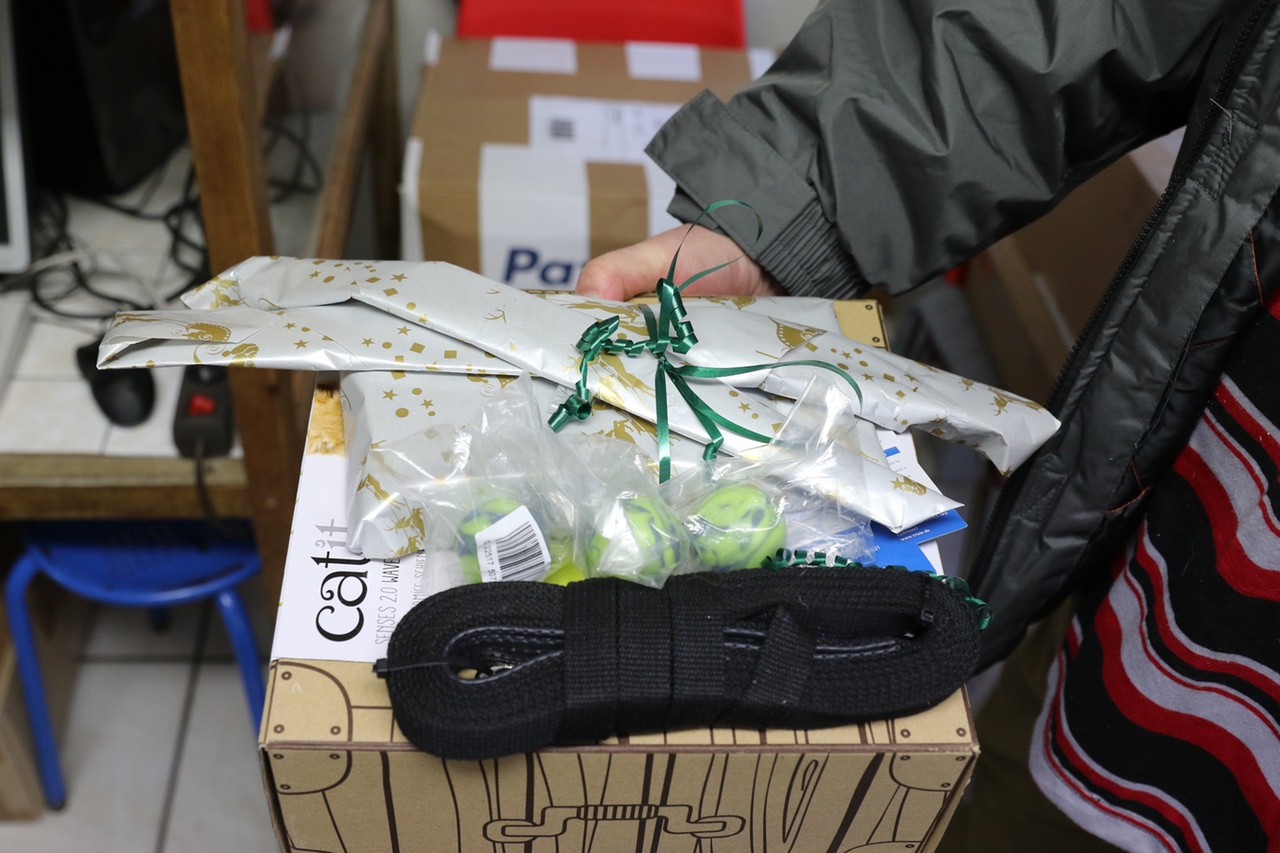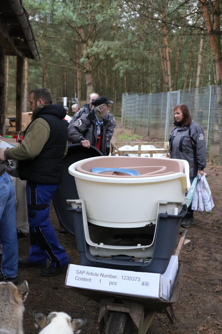 Zum Glück verlief der restliche Tag dann ausschließlich positiv. Alle Besucher kamen mit vollen Händen. Ehemalige schauten vorbei; die Mitarbeiter wurden reich beschenkt; alle Hunde erhielten zusätzliche Gassitouren; die gespendeten neuen LKW-Reifen erhielten ein Weihnachtsschleifchen für unser Dankfoto ...