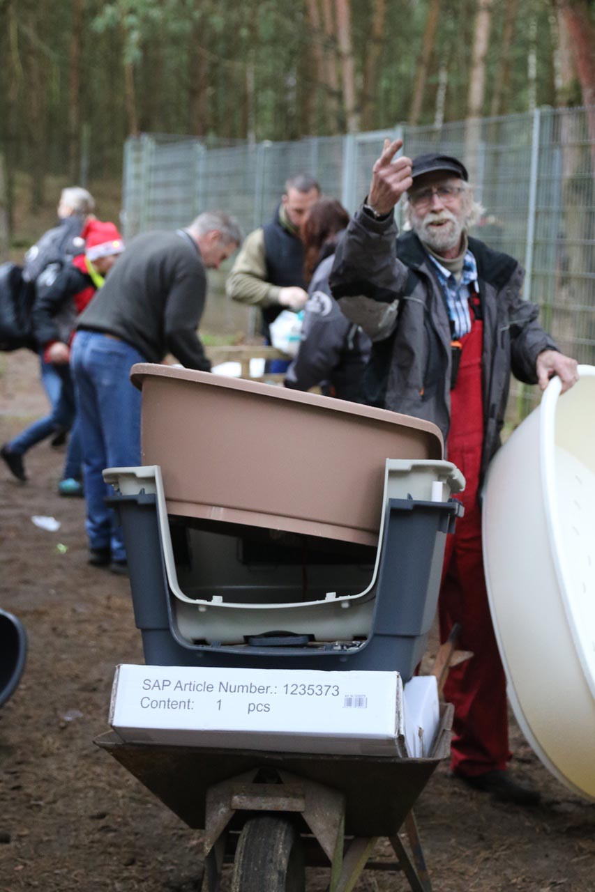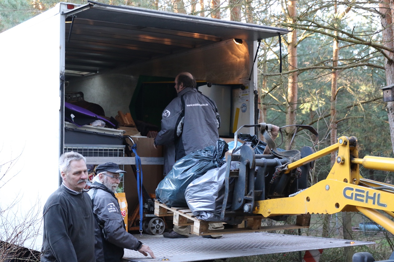 Obwohl alle den ganzen Tag über sortierten, dauerte es bis nach Feierabend in der Dunkelheit, ehe alles ordentlich zusammengestellt und im Lager untergebracht war.