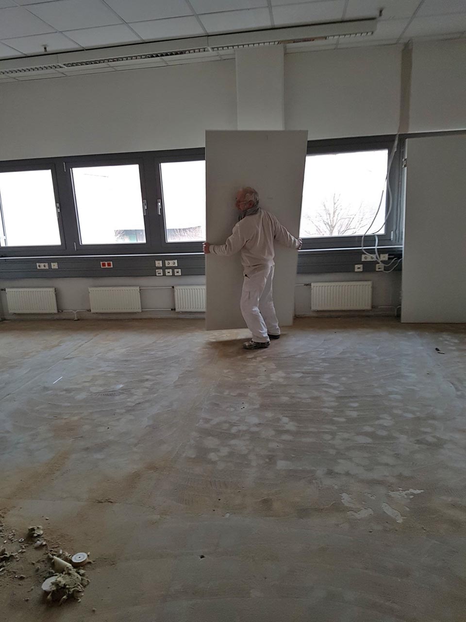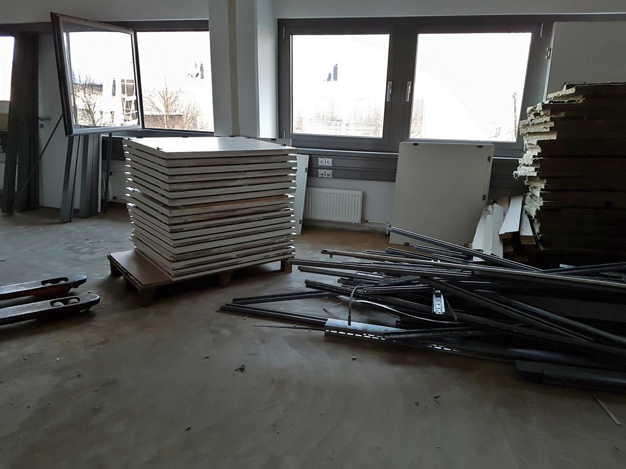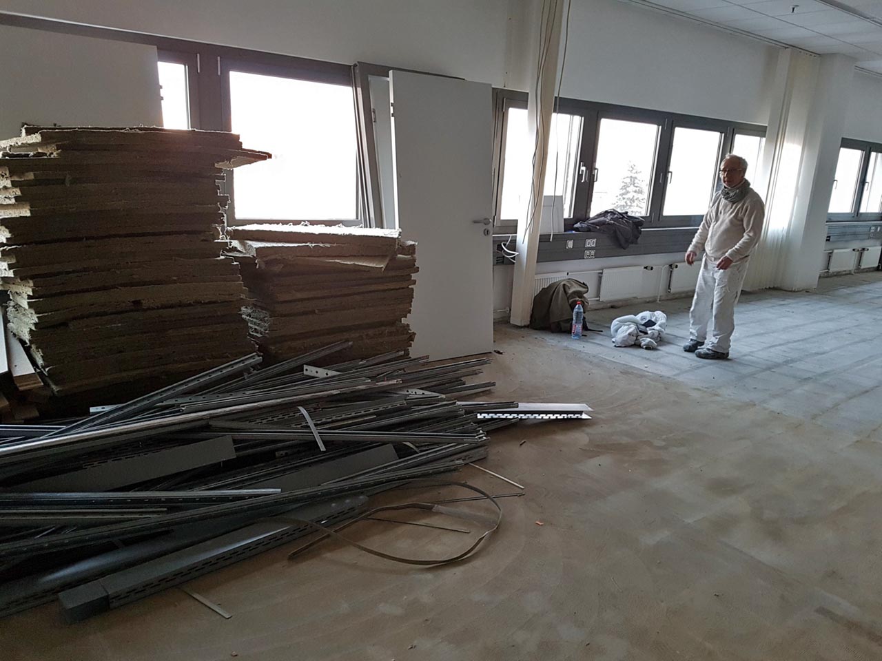 Abgestaubt Mit tatkräftiger Unterstützung von zwei Helfern konnte unser Tierheimleiter schöne Büroteile abstauben: Schränke, Türen, Zwischenwände u.ä. Obwohl alles noch intakt und ordentlich ist, sollte es abrissbedingt entsorgt werden.
