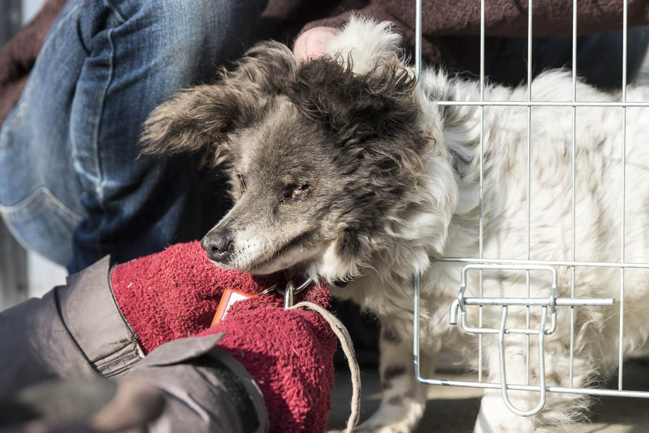 Es sind etliche ältere Tiere unter den Neuzugängen. Eine Hündin hat Probleme mit einem Auge. Wahrscheinlich muss es komplett entfernt werden.