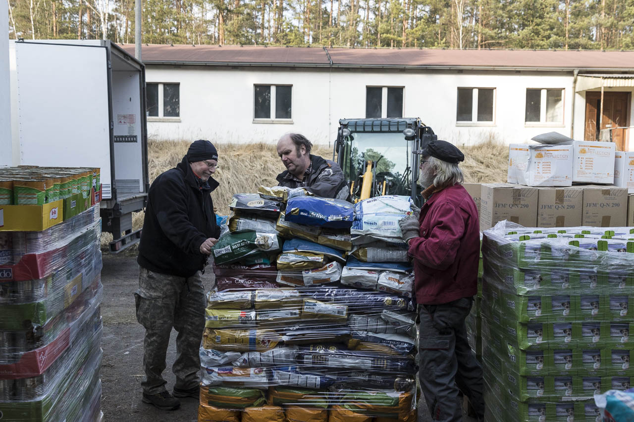 Unsere Tierpfleger - auch die, die eigentlich frei hatten - versorgten die vorhandenen Tiere, damit dann alle Zeit hatten für die Neuzugänge; 27 Hunde und 3 Katzen.