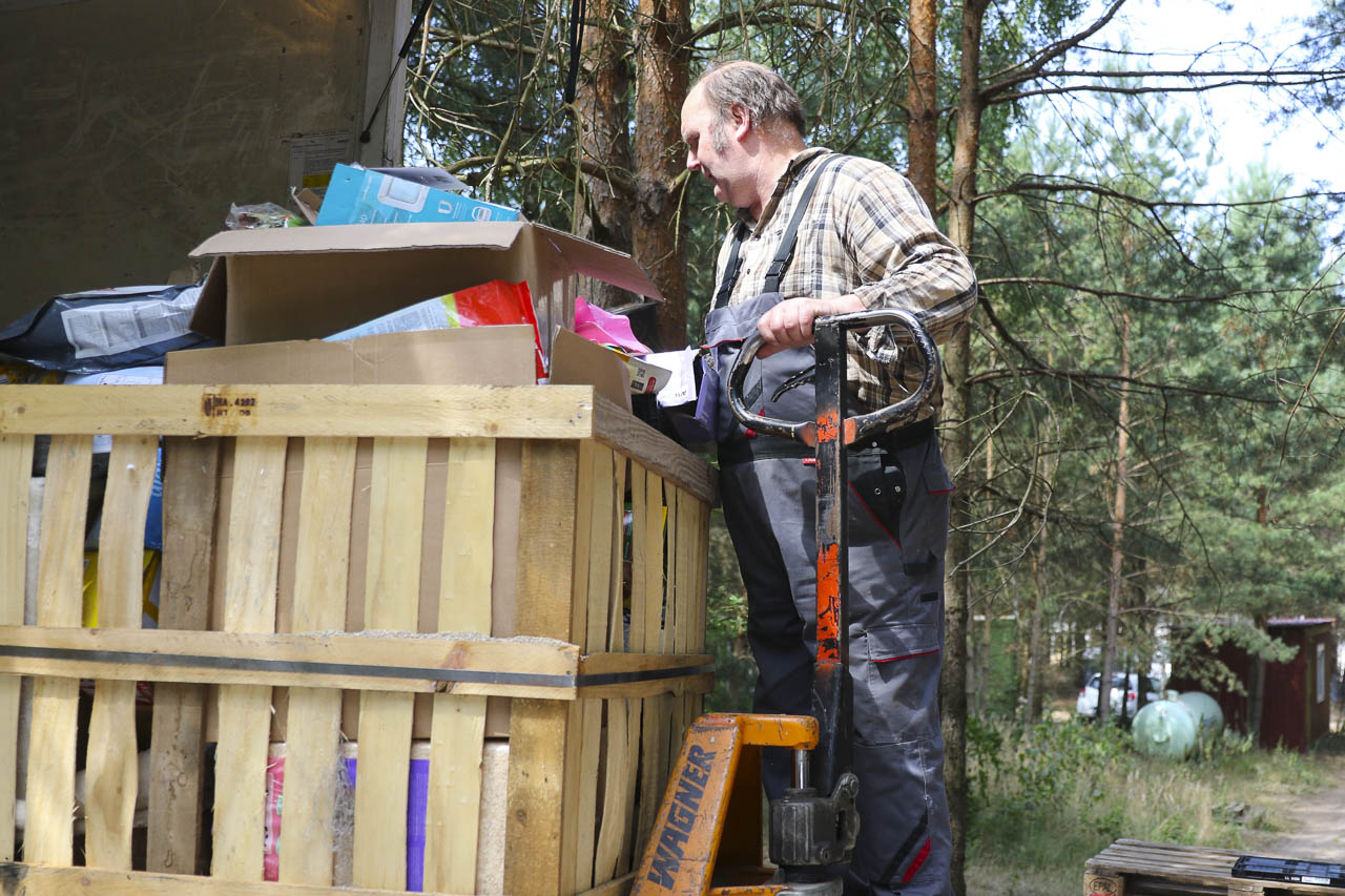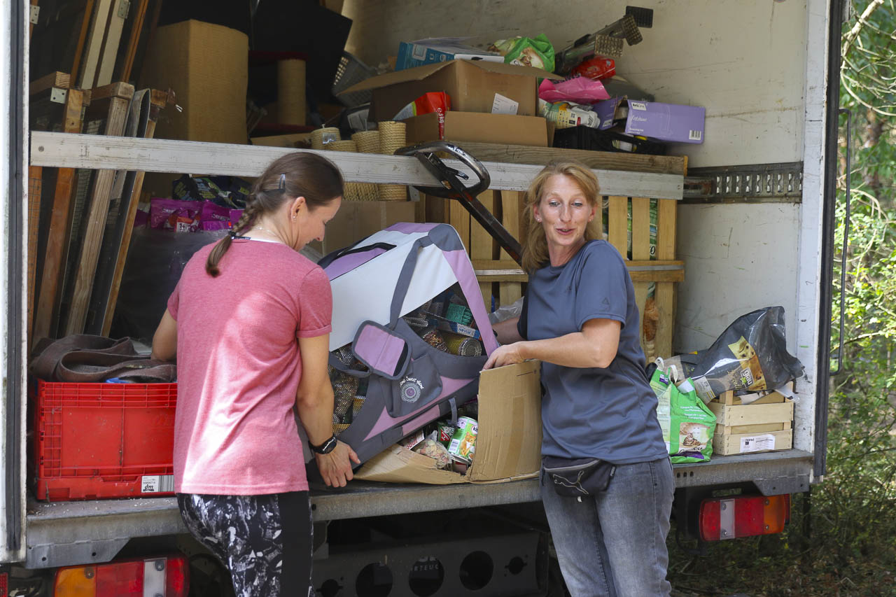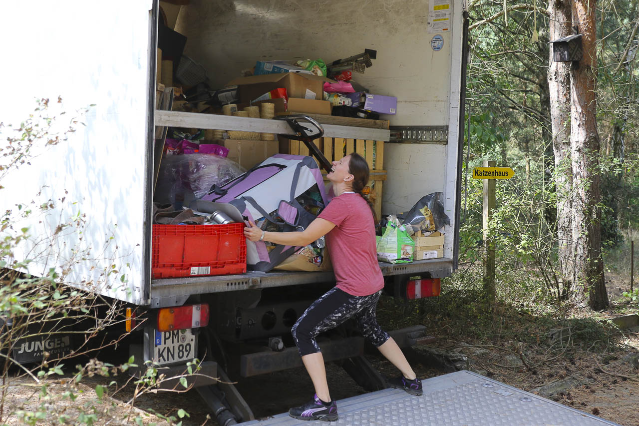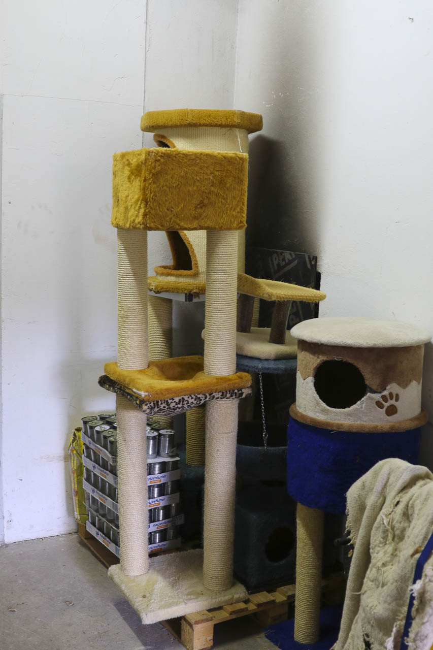 Und am nächsten Tag fuhr er dann noch zu lieben Tierfreunden nach Berlin, die ihren Verein auflösen. Auch dort durften wir uns nehmen, was wir wollten: Kratzbäume, Körbchen, Transportboxen, Gehegeteile ... Der LKW füllte sich.