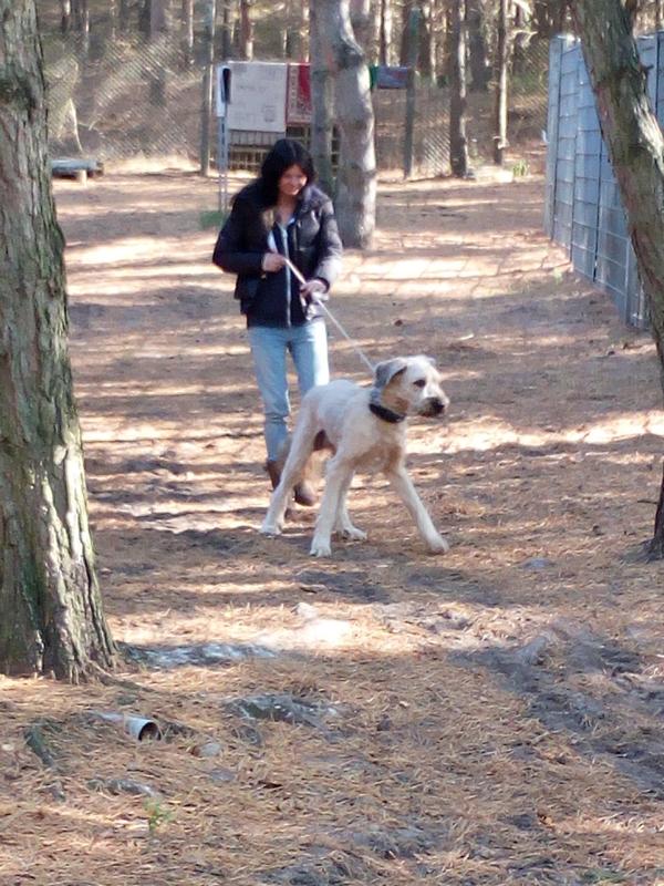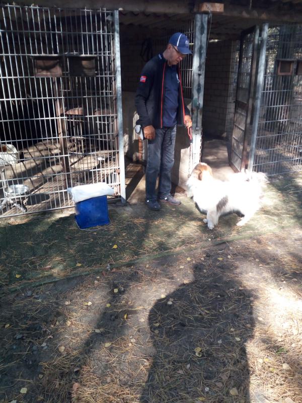 Mit einigen Hunden, die bei uns als verhaltensauffällig abgegeben worden waren, nahm er zunächst einmal Kontakt auf und setzte sich vor den Zwinger. Nach einem ausführlichen Gespräch von "Mann zu Mann", das durchaus schweigend verlaufen kann, war dann die erste Vertrauensbasis geschaffen und es ging entspannt auf Gassi.