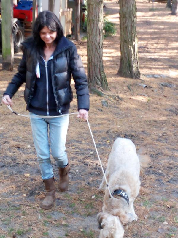 Wie Ehrenamtlerin Claudia vorführt, sind bei der richtigen Handhabung und einem einfühlsamen Vorgehen selbst zarte Frauen durchaus in der Lage, einen großen und starken Hund zu führen.