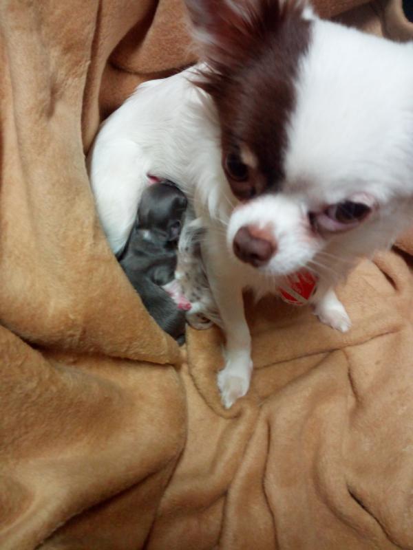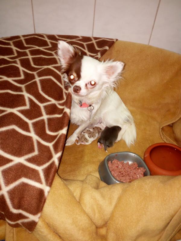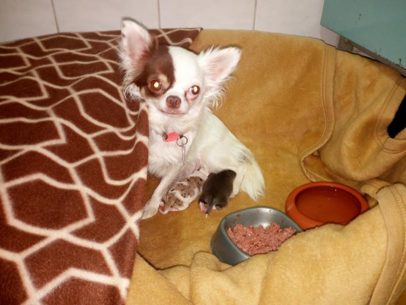 Die frischgebackene Mama war allerdings überfordert mit dem Ergebnis des Liebesabenteuers. Ihre Welpen bekamen nicht genug Milch, verkühlten und starben zum Teil. Da die Besitzerin der Hündin große Angst hatte, dass die verbliebenen zwei Mini-Welpen ebenfalls sterben würden, gab sie uns die Gruppe zur Aufzucht.