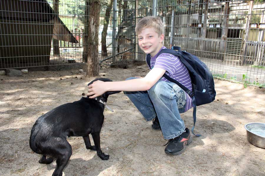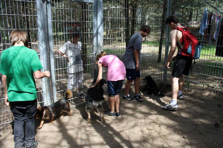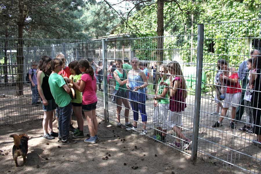 Natürlich wollen alle gern in die Gehege hinein und mit unseren Hunden und Katzen spielen und schmusen. Einzeln oder in kleinen Gruppen ist das auch möglich.