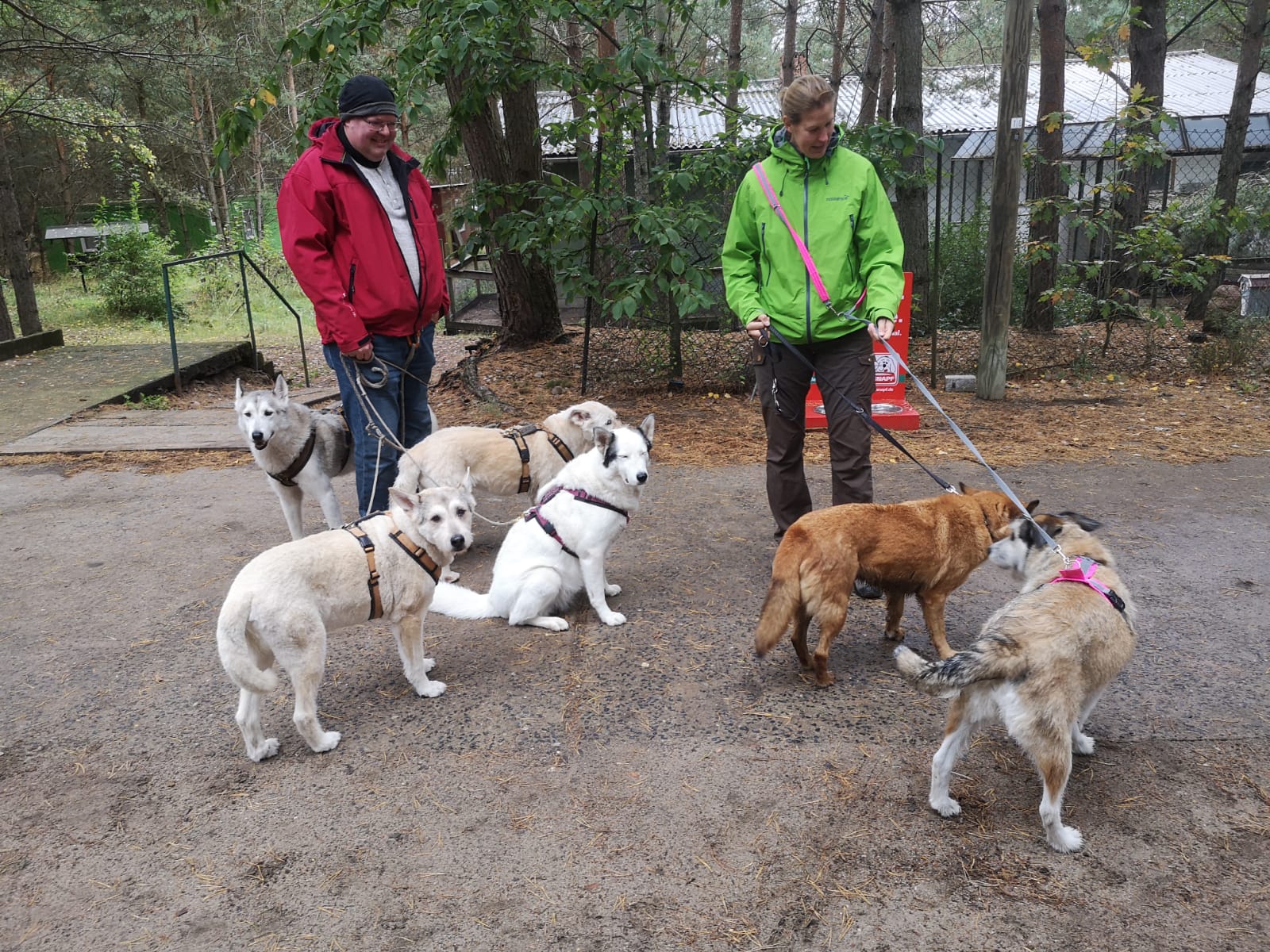 Wander-Sonntag, 8 Uhr: unser Tierheimleiter möchte am liebsten ein Schild ans Tor hängen: Heute geschlossen. Er kurt seit Monaten ebenfalls mit schlimmen Schmerzen. Am Tag zuvor war er den ganzen Samsag zu Einsatzfahrten in Berlin unterwegs, musste über drei Tonnen Material, Futter, Streu und Möbel zusammenholen und verladen und kam erst Mitternacht nach Hause. Sonntag früh musste er vor dem Dienst noch nach Schwielowsee, um zwei Hunde abzuholen, deren Frauchen ins Krankenhaus gekommen war.