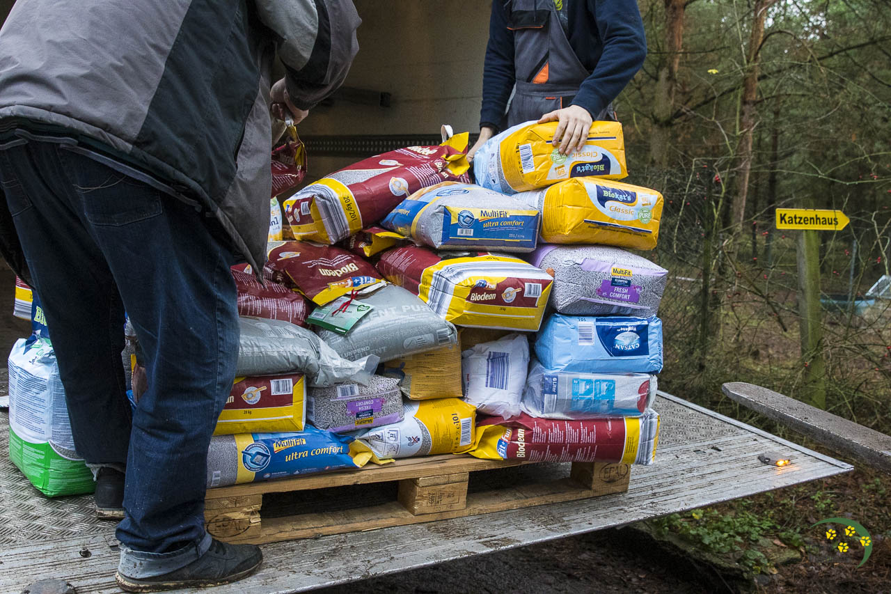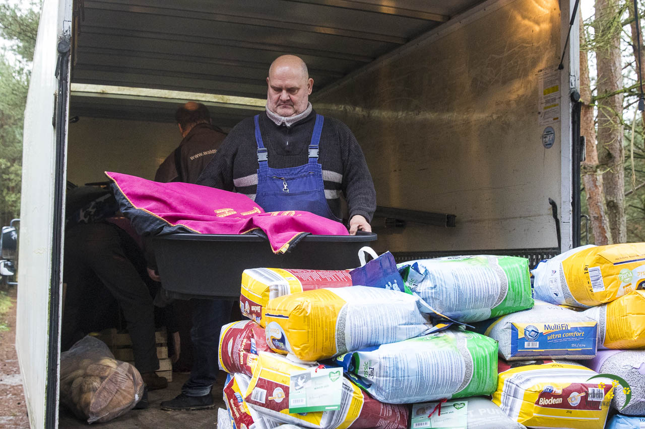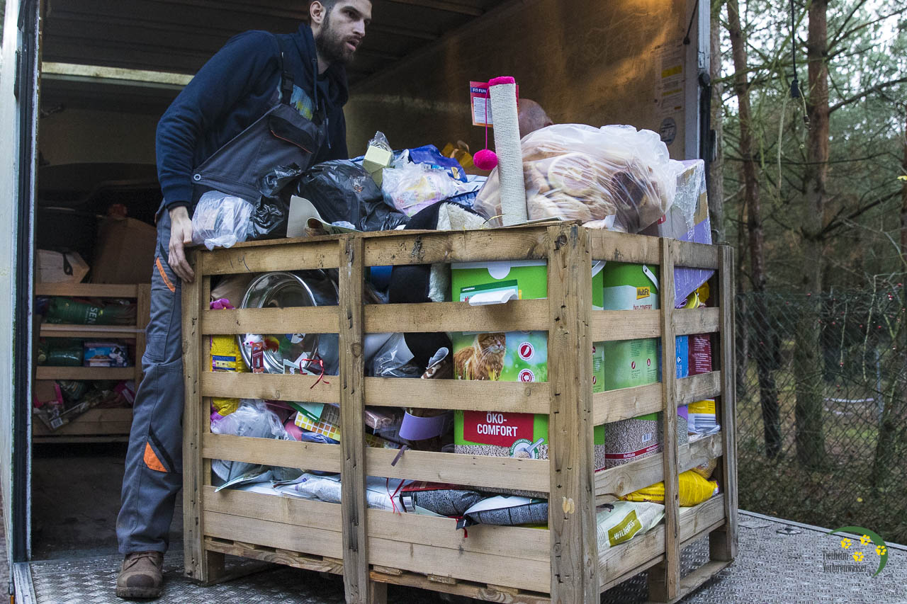 Normalerweise laden wir den LKW bei unserem Weihnachtsfest für die Tiere ab und sortieren. Aber aufgrund der vielen Besucher der Bescherung sind wir dazu gar nicht gekommen.