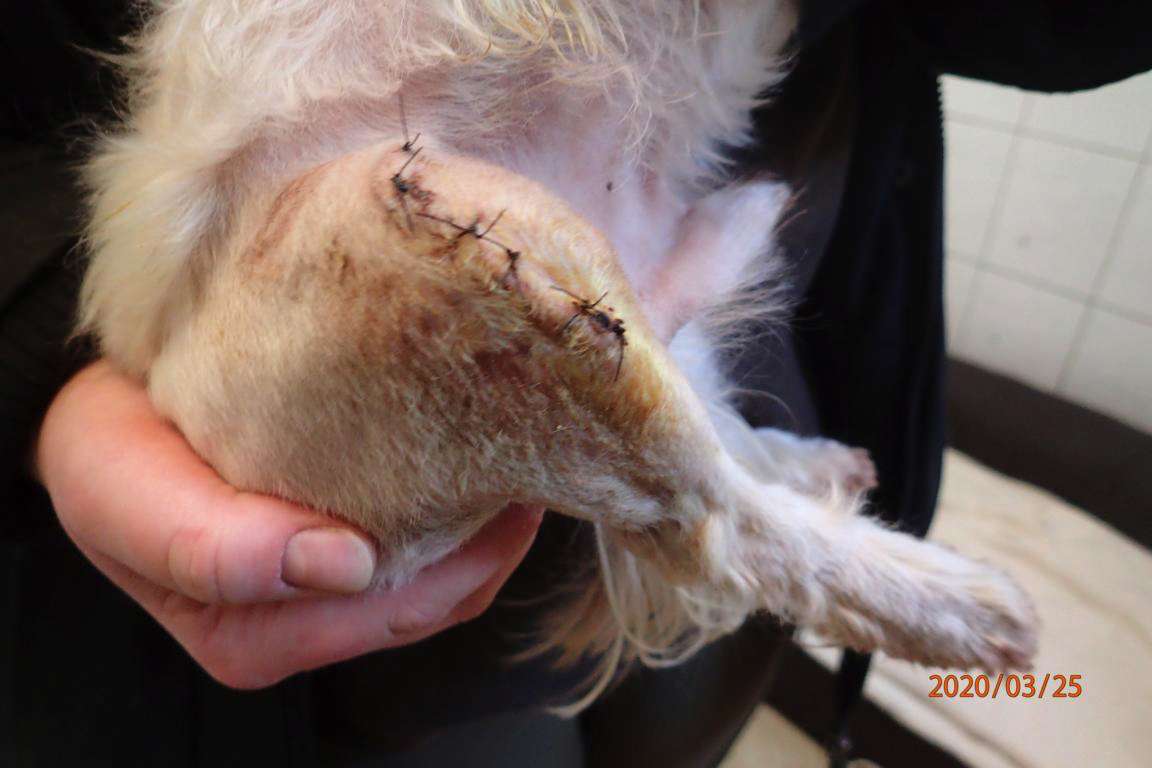 Rocky humpelte und lief meist nur auf drei Beinen. Unser Tierarzt vermutete einen Kreuzbandriss.