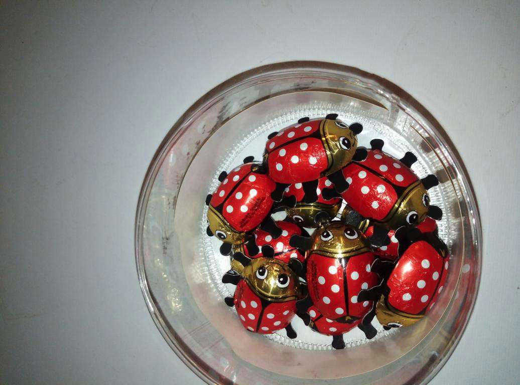 Wir legten jedem Brief einen kleinen Schoko-Glückskäfer bei. Es waren noch welche übrig vom Jahresbeginn, als wir für jeden Mitarbeiter und einige Ehrenamtler Tütchen gebastelt hatten mit vielen Glücksbringern für 2020 darin.