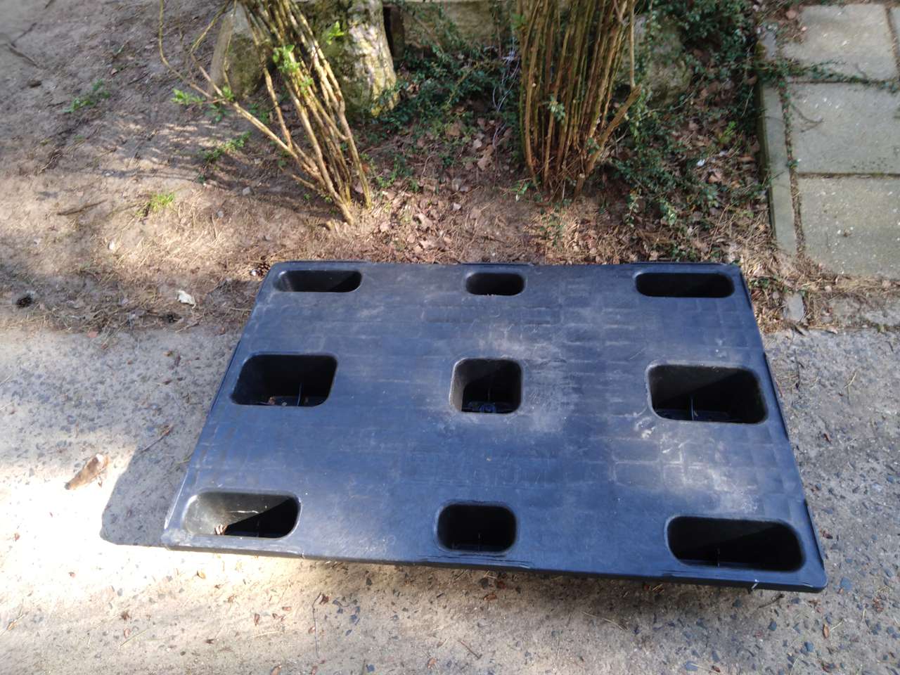 Bei der Abholung von Futterspenden aus Berlin kam unser Tierheimleiter an einem Laden vorbei, vor dem Paletten aus Kunststoff standen.
