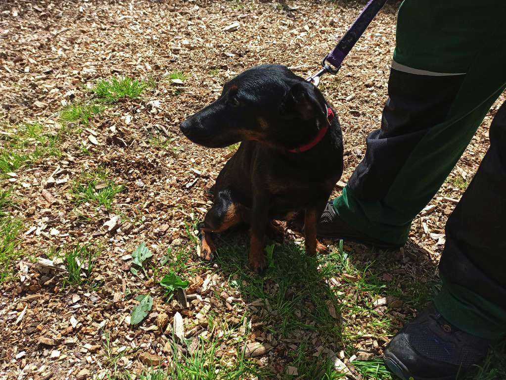 Wir nahmen Frida also auf und unsere Tierpfleger Andreas und Simone nahmen sie in Obhut. Schon nach wenigen Minuten hatte Andreas sie an der Leine und konnte mit ihr Gassi gehen und sie auch streicheln.
