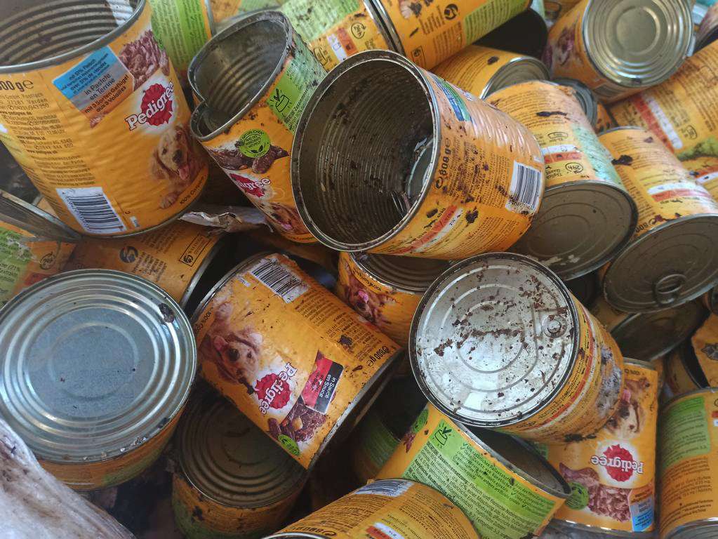 Als wir sie holen wollten, stellten wir fest, dass sich da jemand gütlich getan hatte. Die Dosen waren durcheinandergewirbelt und bekleckert, einige Dosen waren geöffnet und ausgeschleckt.😮