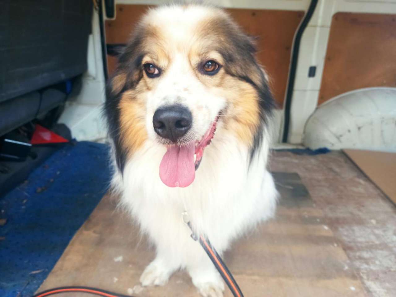 Bei unserem Tierheimleiter ist er immer ganz glücklich und begleitet ihn gern. Auch bei Autofahrten ist er sehr gern mit an Bord und benimmt sich ganz brav.