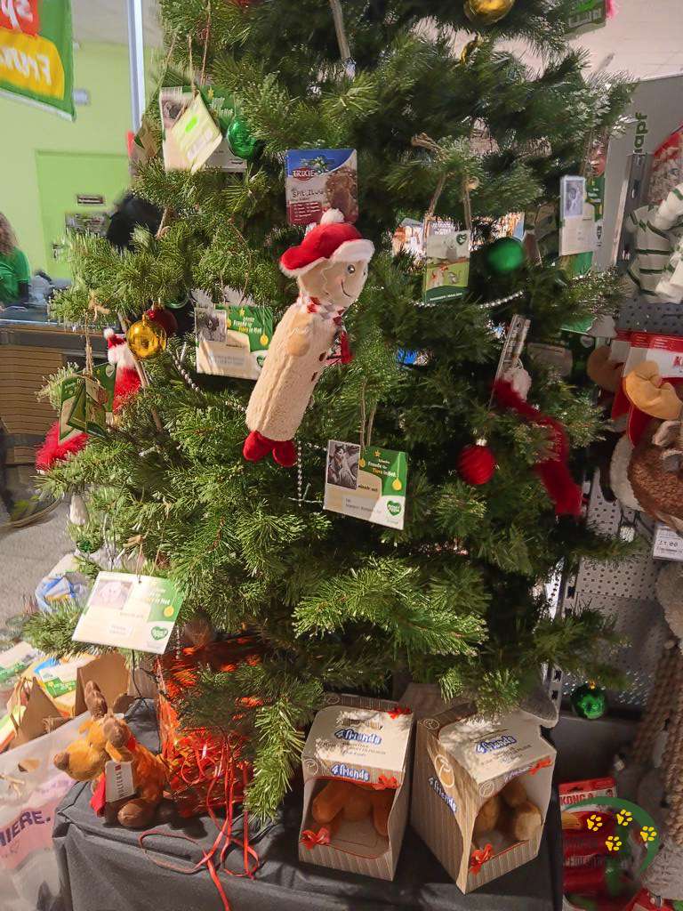 Der Weihnachtsbaum beim Fressnapf in Potsdam für die Tierheimspenden war erst wenige Tage aufgebaut, da durften wir schon die ersten Kisten mit Geschenken abholen.