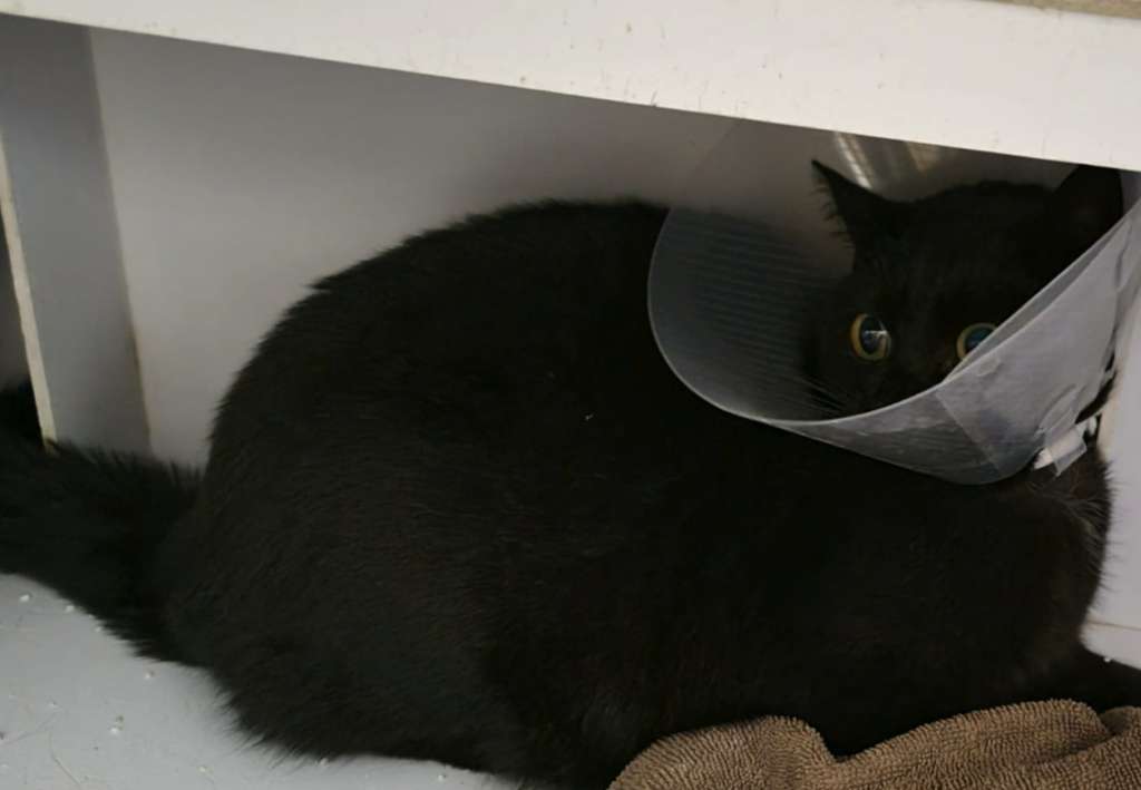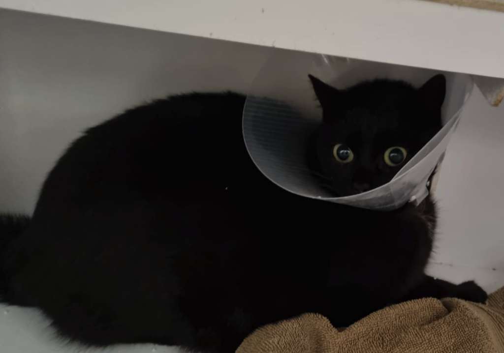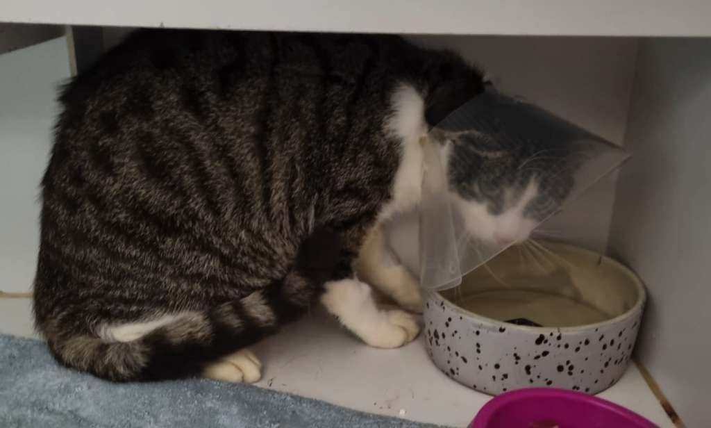 Unsere Tierärzte verwenden zwar selbstauflösendes Nahtmaterial und es müssen keine Fäden mehr gezogen werden, aber die Gefahr, dass eine Kätzin in freier Wildbahn sich die Wunde aufknabbert, alle Eingeweide herausquillen und sie elend umkommt, wäre uns zu groß.