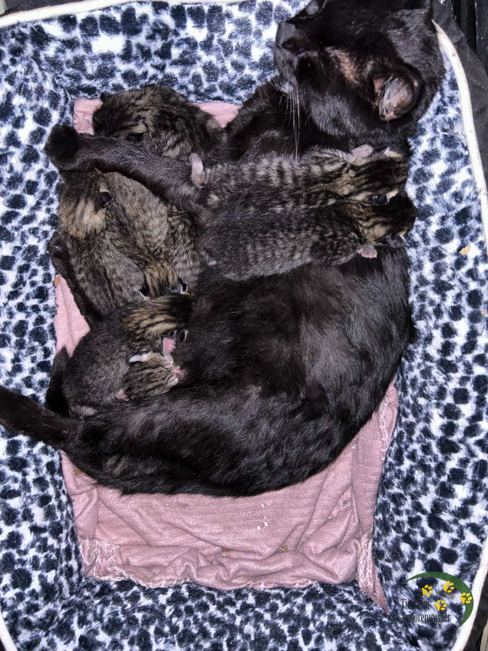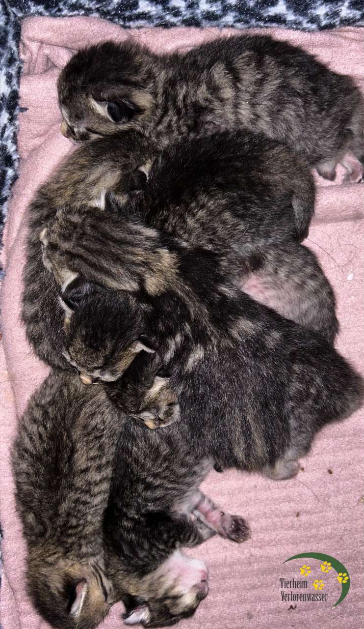 Wir fuhren mit der Kätzin zum Ultraschall, weil wir Totgeburten befürchteten. Doch die Tierärztin gab Entwarnung: alle lebten, aber es sollten sieben oder acht Babys sein. Sie hatten schlicht und einfach keinen Platz mehr, sich viel zu bewegen.