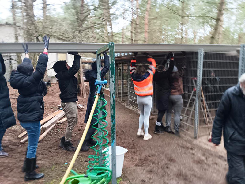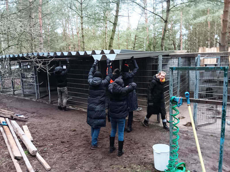 Endlich konnten wir so die Dächer der Hundegehege austauschen. Schon lange ärgerten wir uns über die marode altersschwache Anlage, denn die Hunde standen im Dreck, wenn es durchregnete.