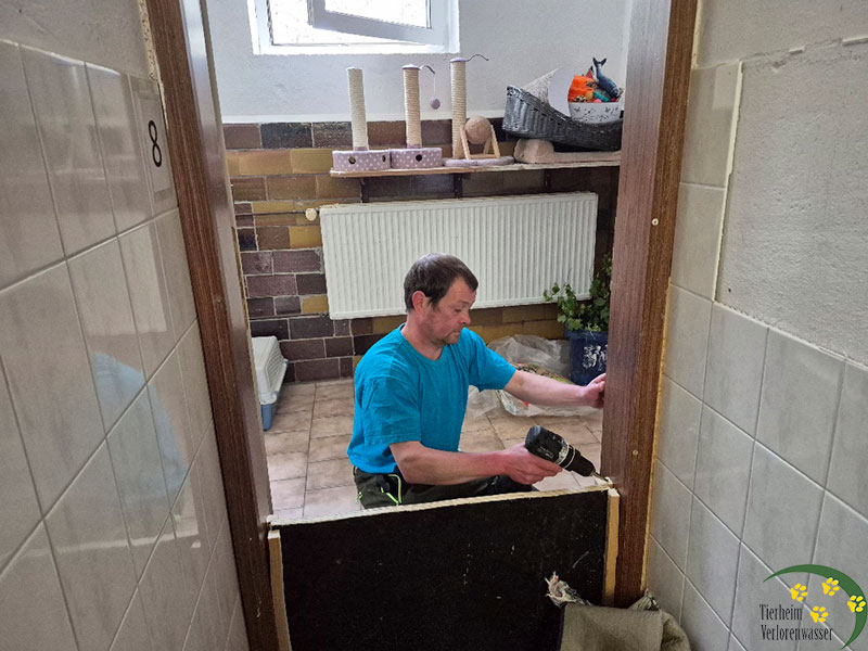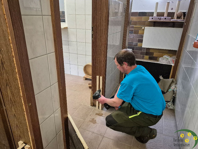 Unser Handwerker Christian baute eine Sperre an den Türen ein, damit die Tierpfleger die Räume betreten können, ohne dass die flinken Tierchen entweichen.