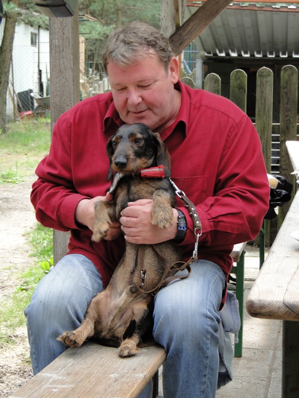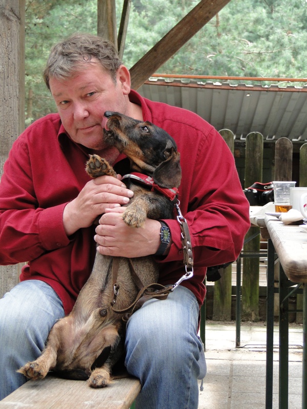 Walter Plathe erschien in Begleitung seines Dackels Polonius. Dieser ist immer mit von der Partie - egal, wo Herrchen zu tun hat. Auch abends im Theater wartet Polonius hinter der Bühne.