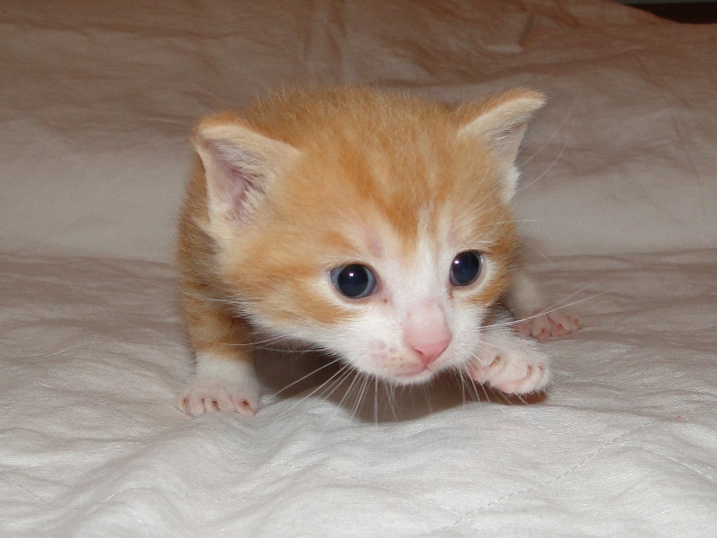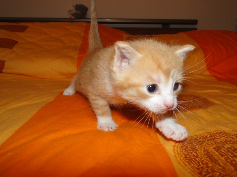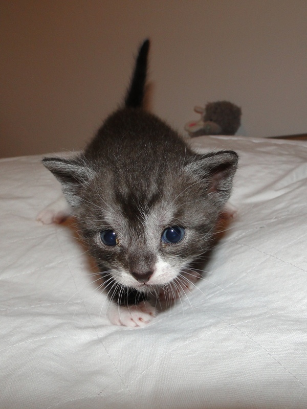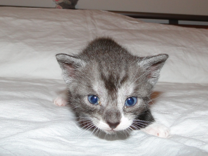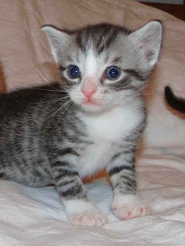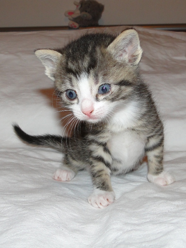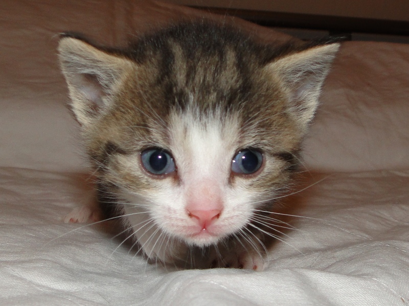 Und natürlich Fay als die Mama. Wer das Glück hat und dieser jungen Dame ein Zuhause geben darf, der hat einen Sechser im Lotto. Sie hat mittlererweile verstanden, wofür der Kratzbaum gedacht ist. Sie ist absolut stubenrein, springt nirgends drauf und hat bis jetzt keinerlei Unsinn im Kopf, was Katzen sonst so an sich haben. Was eigentlich auch schade ist, denn gewisser Unsinn bringt halt meist auch etwas Spannung mit sich. Nicht umsonst sagt man halt oft, dass Katzen ihren eigenen Kopf haben. Gut, ok, den hat sie auch, wenn es ums Kuscheln geht, denn das könnte sie stundenlang. Und wenn morgens bei mir der Wecker klingelt, dann stelle ich ihn meist so ein, dass er noch ein paar Mal klingelt. Das Klingeln ist allerdings der Startschuss für Fay, jetzt schmusen zu wollen. Aber immerhin wartet sie, bis der Wecker klingelt und tobt nicht Nachts durch die Gegend wie meine eigenen Katzen. Sehr sympathisch, muss ich ja zugeben. So, und nun lasse ich mal Bilder sprechen. Ach ja, da fällt mir ein: heute habe ich zum ersten Mal probiert, ob die Kleinen auch schon selbst aus dem Schüsselchen trinken, denn ihre Zähne sind draußen und traktieren die Mama ganz schön. Die ersten Versuche sind allerdings gescheitert. Ein Katerchen fand es zwar lecker, hat aber eher versucht, den Rand der Schüssel zu essen anstatt die Milch. Naja, ist ja noch kein Meister vom Himmel gefallen und mit ein bißchen Übung klappt das auch. Sie haben ja noch Zeit.