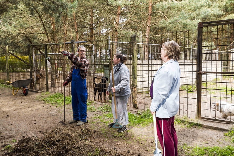 Andere Tierfreundinnen und Tierfreunde verschönerten den Teich oder halfen bei der Holzbergung. Bei dem schweren Sturm vor drei Wochen hatte es einige Dächer der Zwinger abgedeckt und zahlreiche Bäume umgenietet. Die Dächer hatten unsere Tierpfleger inzwischen bereits geschlossen, aber das umgebrochene Holz musste noch beräumt werden.