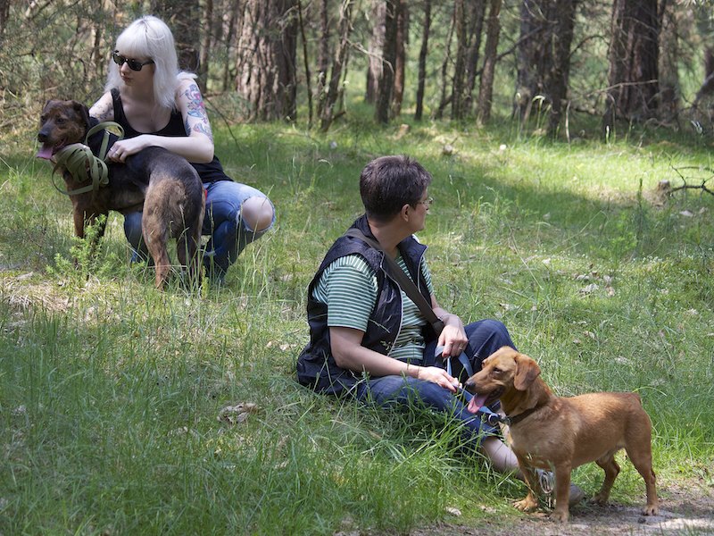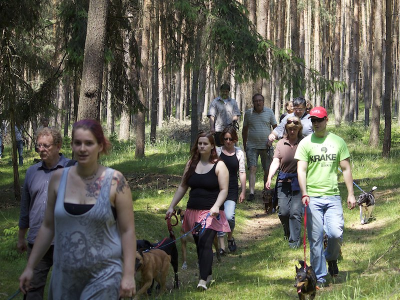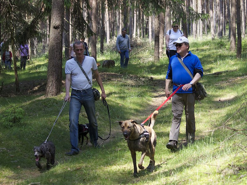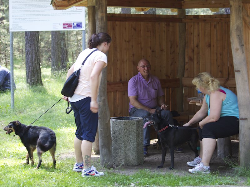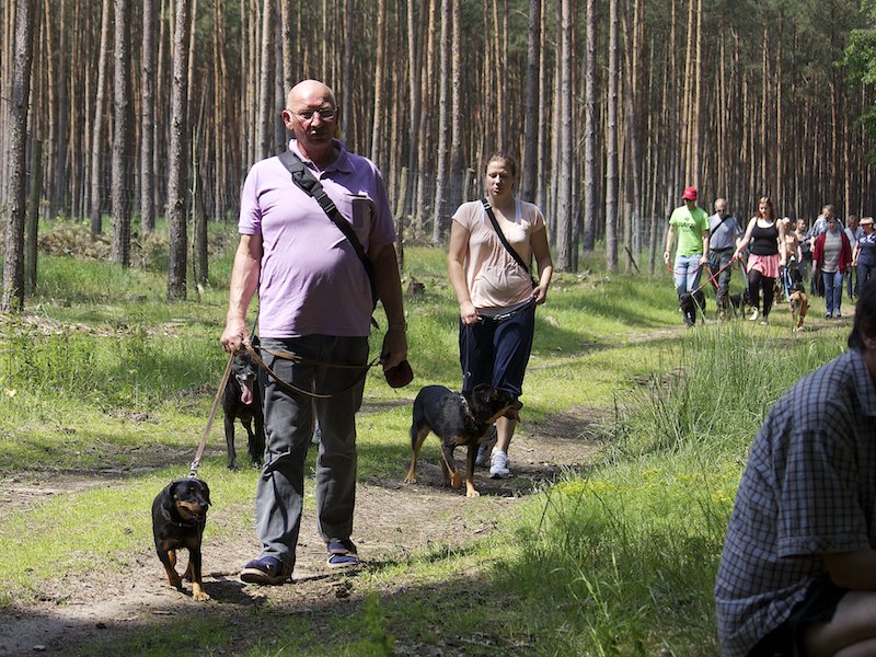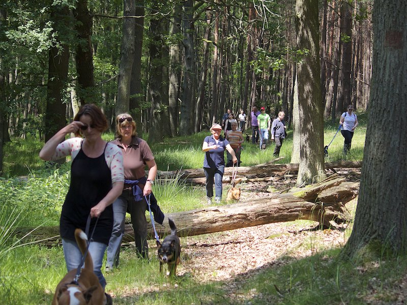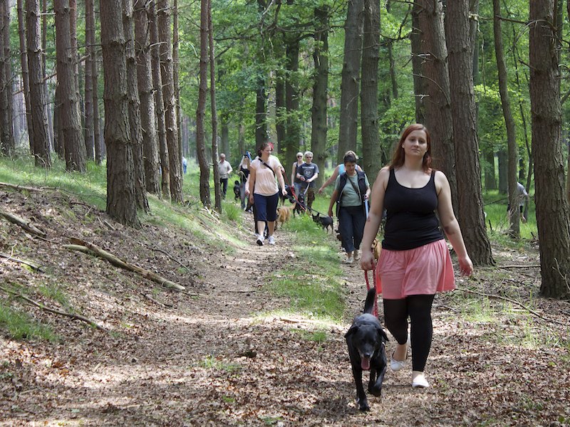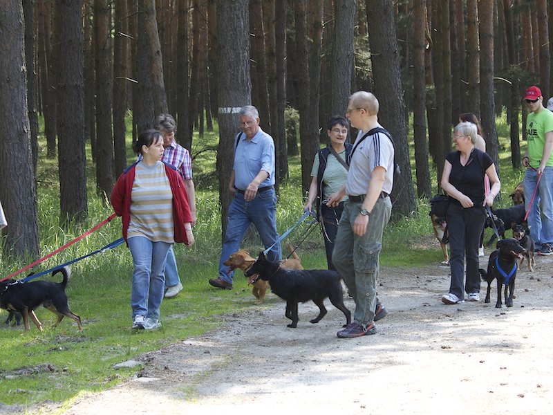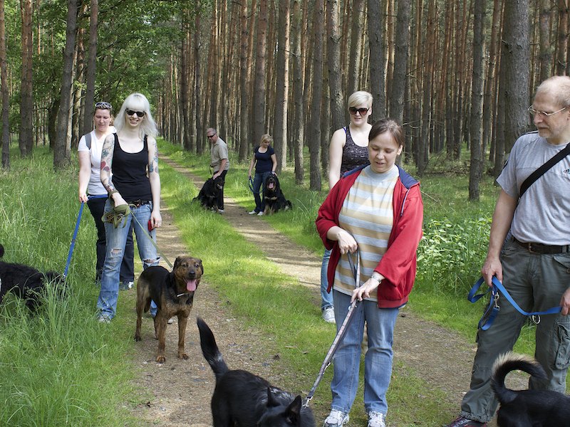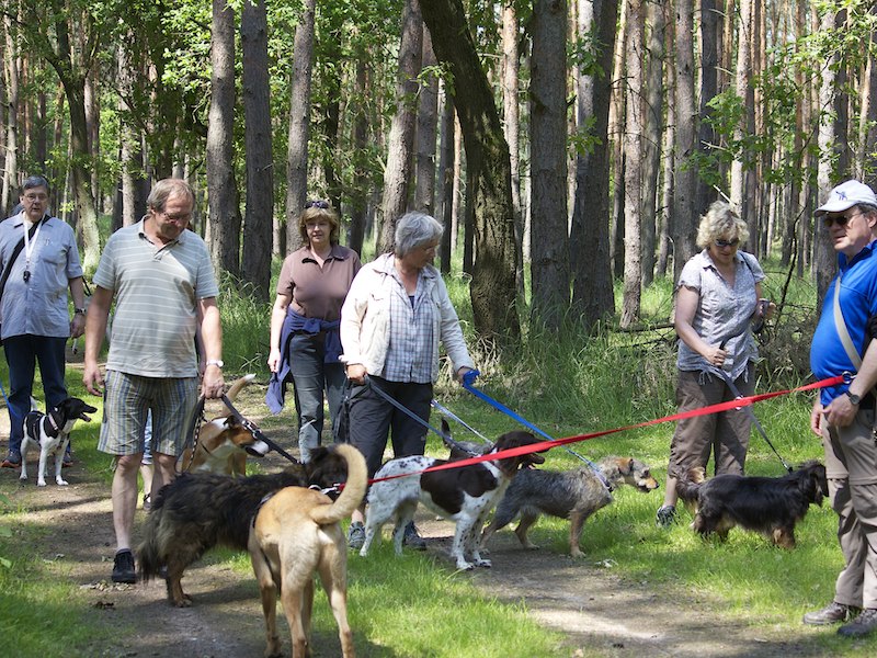 Der Zuspruch war groß: ehemalige Bewohner mit ihren neuen Familien; unbekannte Besucher, die ihren Hund mitbrachten und unsere Region kennenlernen wollten; und natürlich Gassigeher, die einen unserer Hunde mit zur Tour nahmen. Wir hatten nicht mit so viel Interesse gerechnet: so gingen uns die Leinen und die Hunde aus. Aber solche Probleme hat man gern.