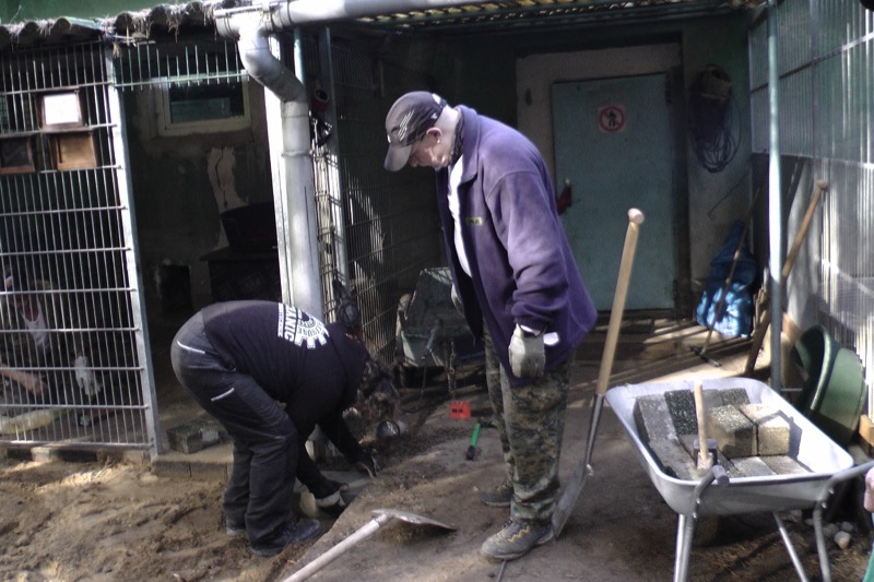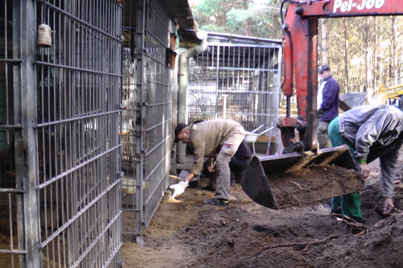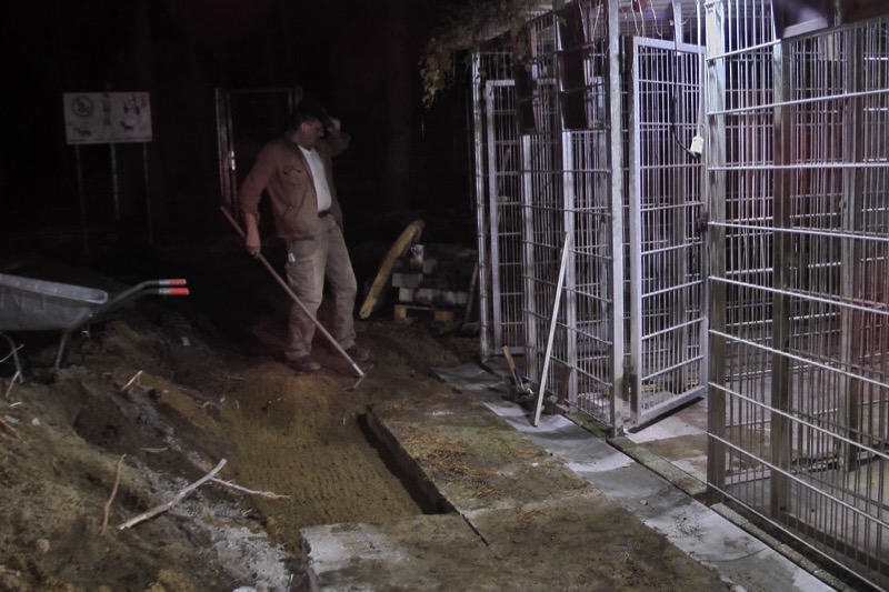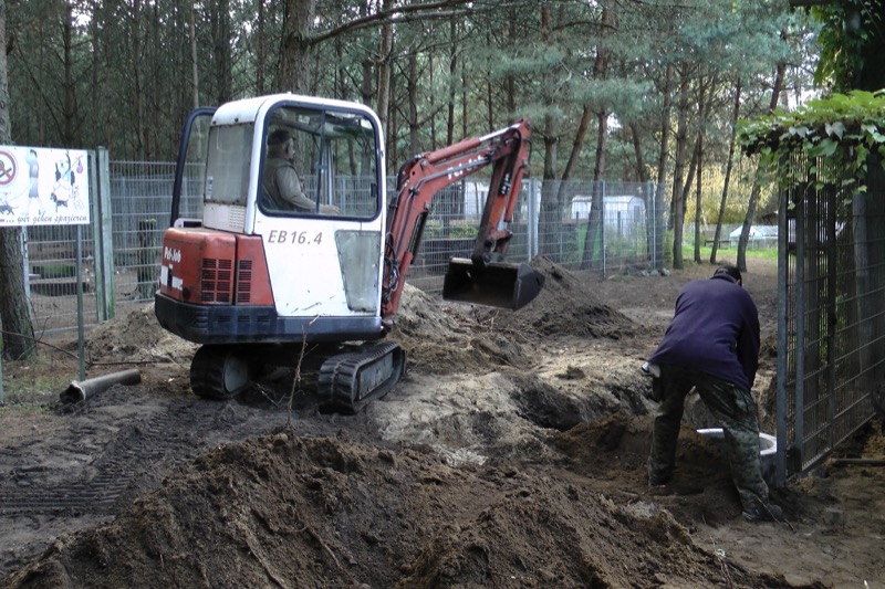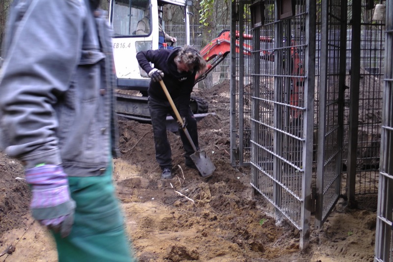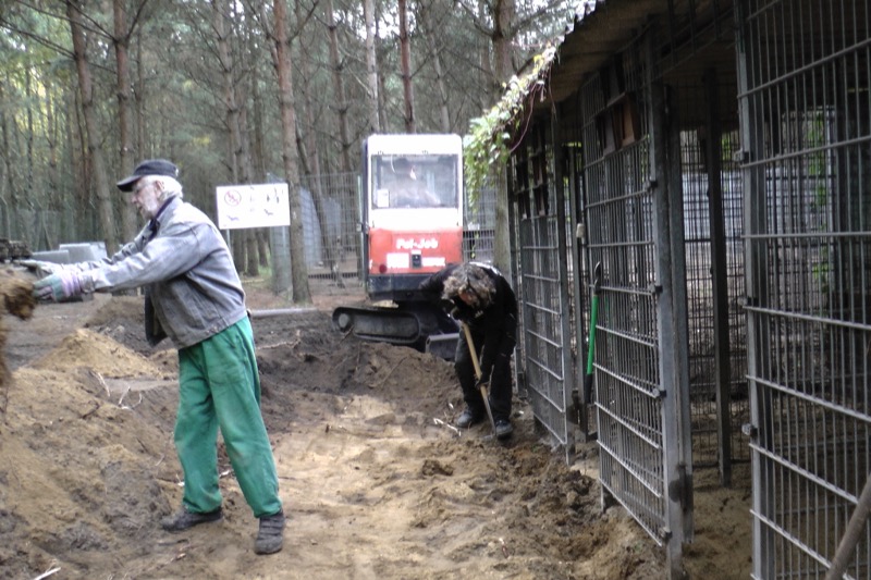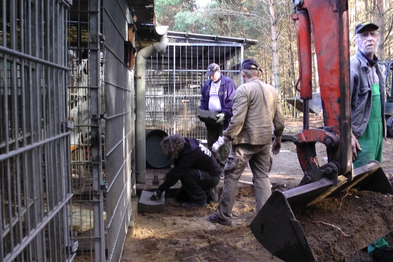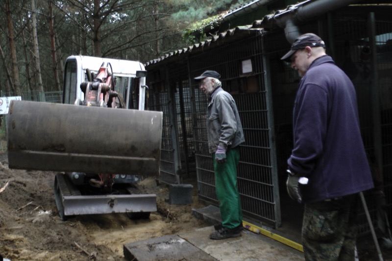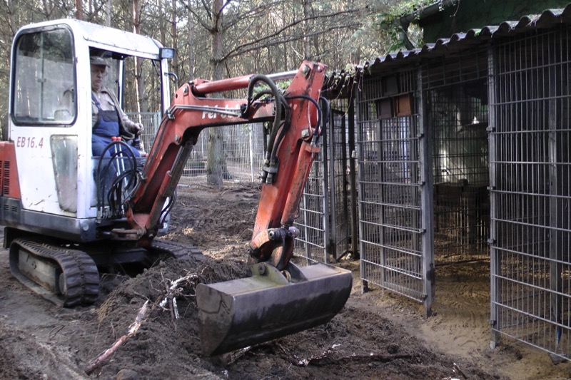 Zwei Ehrenamtler, zwei Tierheimmitarbeiter, unser Lieblingsbaggerfahrer Herr Alsleben und unser Tierheimleiter schufteten bis spät abends, um die wichtigsten Arbeiten abzuschließen.