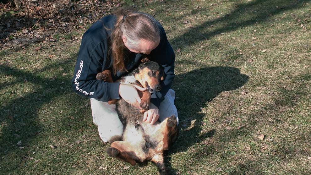 Wie von Euch angekündigt, erwies er sich als ein ausgesprochener „Schmusehund“. In jeder Situation und zu jedem Zeitpunkt bereit und fast schon lechzend nach Streicheleinheiten und Liebkosungen. Mit denen verwöhnen wir den kleinen Kerl ständig, denn irgendwie scheinen wir zu spüren, das der zutrauliche Menschenfreund ein Riesennachholebedarf hat.