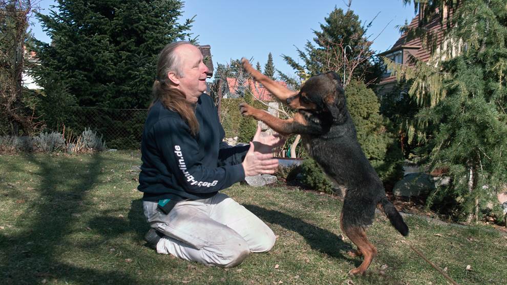 Mittlerweile hat Timo viele neue Zweibeiner und auch ein wenig seiner Gattung kennengelernt, ist im Spreewald sowie anderen Wald- und Wiesenstücken gewesen. Und steigt auch OHNE Leckerli-Lockmethoden ins Auto, wenn eben einer von uns Menschen vorangeht. Die Phobie Autos gegenüber wird sich also mit der Zeit legen, denken wir. Anderen Hunden gegenüber ist er sehr gelassen und alles andere als ein Streithahn. Zu manchen entwickelt er fast schon „freundschaftliche Beziehungen“ und tollt mit denen herum, wenn die Herrchen/Frauchen die Leinen lösen. Timo bleibt dabei (auffälliger als andere) ständig in unserer Nähe. Das alles ist sehr angenehm.