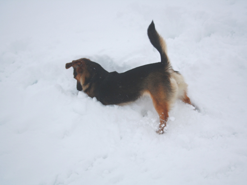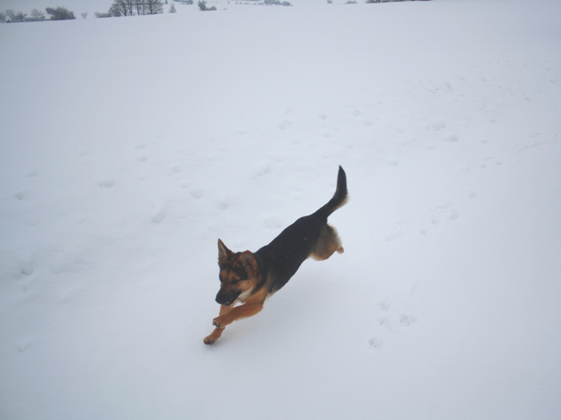 Ihre anfängliche Schüchternheit beim Gassigehen, ist wie weggeblasen. Sobald man die Leine nimmt, kommt sie schwanzwedeln auf einen zu und spielt draußen eifrig mit anderen Hunden, am liebsten mit den ganz großen. Trotz ihrer kurzen Beine hängt sie auch die Großen durch schnelle Kehrwendungen im Handumdrehen ab. Kleinen Kläffern geht sie lieber aus dem Weg. Nur schnell an uns vorbeilaufende Gruppen von Menschen sind ihr noch nicht so geheuer.
