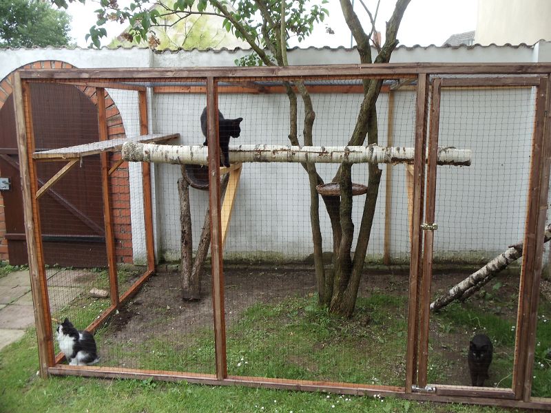 Da wir ja nicht mehr seit meinem unfreiwilligen Ausflug ins Freie dürfen,hat sich unser Dosenöffner auch was ausgedacht,ein Freigehege,nur für uns Drei! Das ist eine super Sache und das nehmen wir jetzt gerade im Sommer sehr gerne an!
