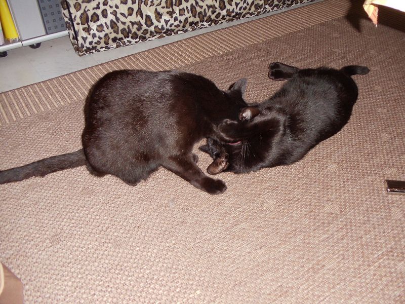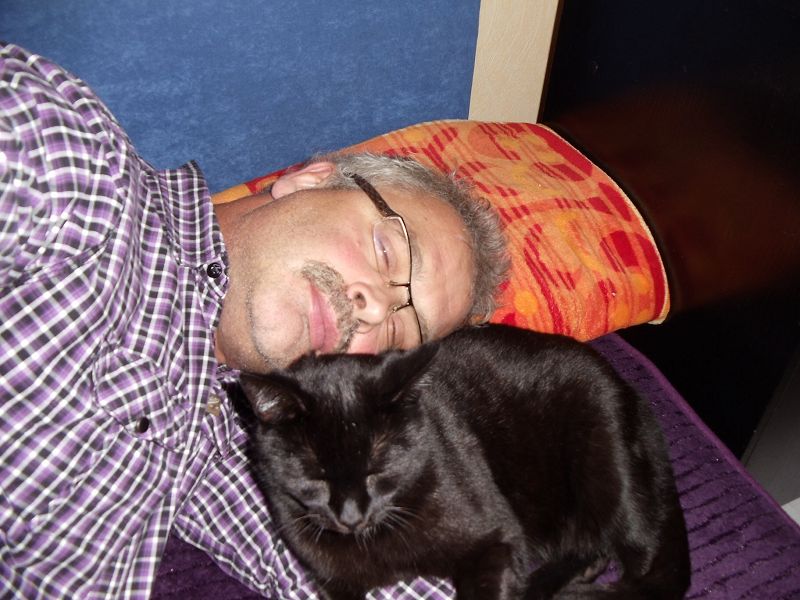 Abends wenn unser Herrchen nach Hause kommt wird gefuttert und dann ausgiebig gekuschelt und viel geschlafen!