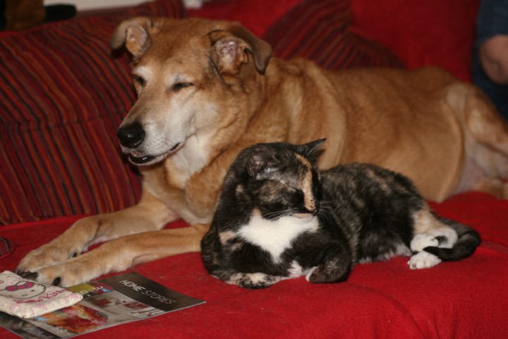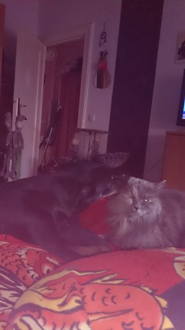 Anbei noch ein paar Bilder von Paris Lieblingstieren - ihrem Huhn, ihrer Lieblingskatze Mausi, mit der man ständig Fellpflege betreiben muss. Auch Mali und Sandpfote haben sich an die kleine Verrückte gewöhnt.