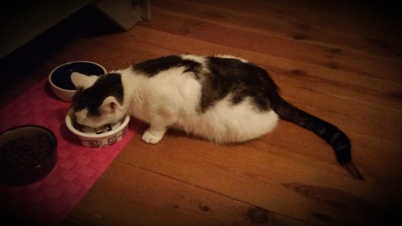 und Frauchen hat auch wieder für Wasser und Futter gesorgt. Ich lasse es mir schmecken.