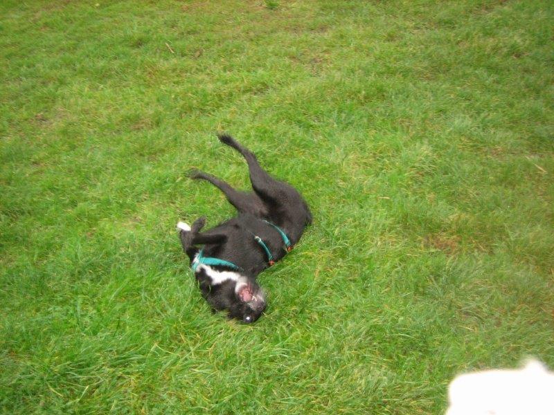Das Wichtigste zuerst: mir geht es gut. Meine Adoptivmama sagt, ich kann rennen wie ein Gepard, springen und klettern wie ein Steinbock, Haken schlagen wie ein Hase und mich so lustig wälzen wie sonst niemand. Die erste Woche habe ich zum Glück fast vergessen, sie war schrecklich: so viele Häuser, Autos, Fahrräder, Menschen, Hunde und vor allem Schulkinder  in dieser riesigen Stadt, dass ich kaum rausgehen wollte. Weil ich solche Angst hatte, habe ich mich mehrfach aus meinem Halsband und verschiedenen Geschirren herausgezogen und mich im Gebüsch versteckt, sehr zur Aufregung meines Frauchens. Ich bin aber immer gleich zu ihr zurückgekommen. Sie hat dann im Internet ganz schnell ein ausbruchsicheres Geschirr gekauft , das hat Riemen und Schnallen auch hinter meiner Brust, und seither sind alle entspannter, ich natürlich auch.Auf freiem Feld und im Wald bin ich zuerst an der Schleppleine gegangen, seit sechs Wochen darf ich dort aber ohne Leine laufen. Ich bemühe mich, auf Rückruf immer gleich zu reagieren. Vor ein paar Tagen habe ich mich sogar überzeugen lassen, dass es Spaß macht, auch mit anderen Hunden als den Tierheimkumpels zu spielen. Meine Verhaltenstherapeutin sagt, ich muss jetzt nur noch lernen, meine panische Angst vor Schulkindern zu überwinden…