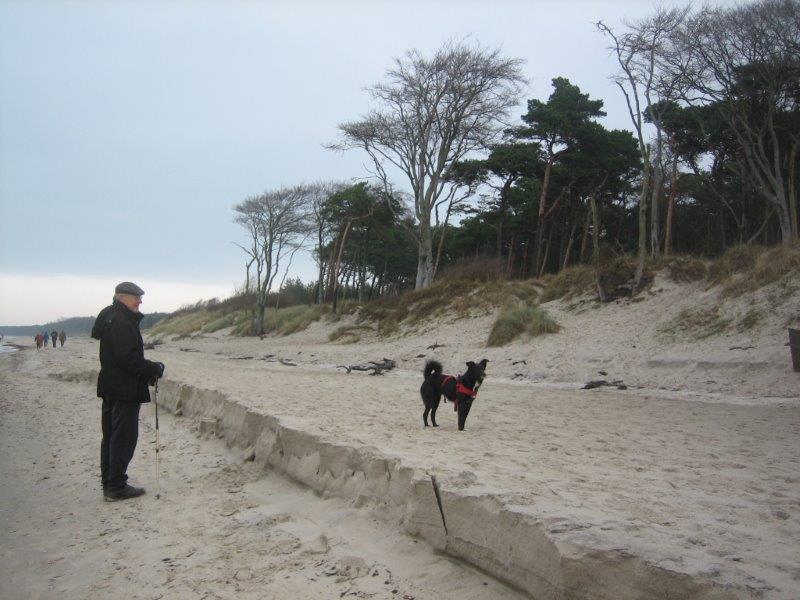 Wir haben Ende November Urlaub auf dem Darß gemacht. Dort hat es mir prima gefallen, auch wenn mir das Meer am Anfang ziemlich Angst eingejagt hat. Meine Leute sind einmal 20 km gewandert und ich bin gleichzeitig bestimmt das doppelte gelaufen, weil ich so fröhlich und ausgelassen war. Ich freue mich schon darauf, nächstes Jahr mit ihnen eine mehrtägige Weitwanderung zu machen.