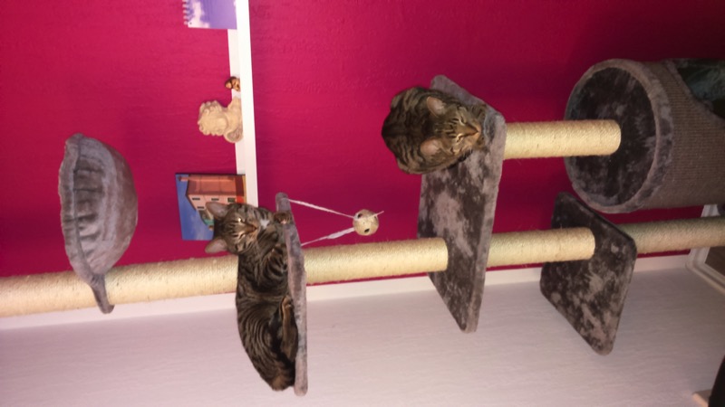 es sind jetzt 3 Wochen vergangen, als wir die beiden Kater Timmy und Jimmy von Euch abgeholt und nach Berlin "umgesiedelt" haben. Es wird Zeit, zu berichten, wie unproblematisch die Fahrt und der Einzug in ihr neues Zuhause verlaufen sind. Beide Kater haben sich ohne große Berührungsängste sehr schnell an ihr neues Zuhause gewöhnt und mittlerweile das "Regiment" übernommen...schnurr. Soll heißen, die persönlichen "Dosenöffner" erfüllen fast jeden Wunsch, man (Kater) schläft im Bett und kann sowohl in der Wohnung, als auch auf dem gesicherten Balkon nach herzenslust toben. Es sind wirklich zwei außerordentlich liebenswerte Katerchen, mit so unterschiedlichen Charakteren.