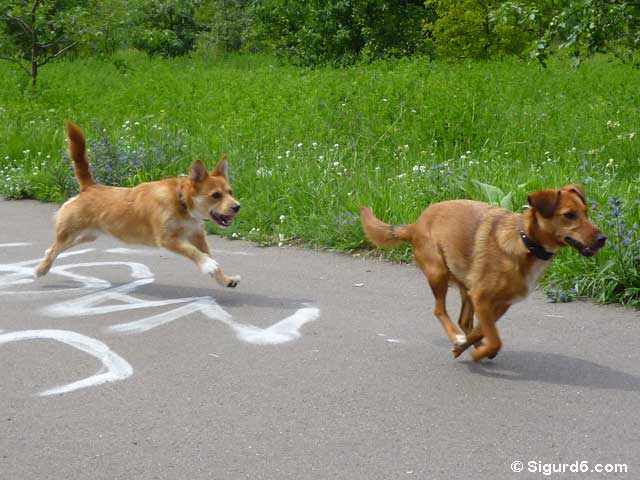 "Am 25. Mai 2011 kamen wir - Timmy und Anke - zu unserem Frauchen und Herrchen. Seitdem sind wir mit deren Erziehung vollauf beschäftigt. Es ist gar nicht so einfach ihnen die richtige Wurftechnik des Ballwerfens beizubringen und das ist noch die leichteste Übung.