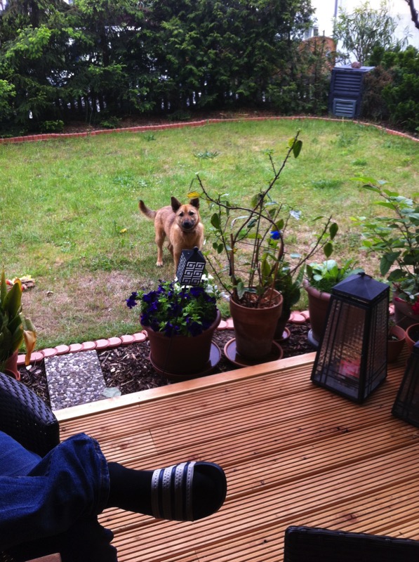 Danach hatte mir mein Frauchen den Garten gezeigt, das war doch schon mal etwas. Habe Ihn natürlich gleich mal eingeweiht.