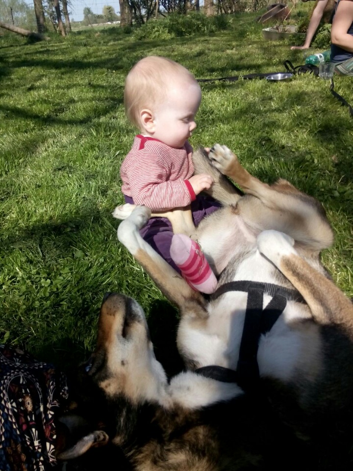War ihr anfangs beim Auto- und S-Bahnfahren noch sehr unwohl, springt sie nun folgsam hinein. Den zu Beginn sehr suspekten Fahrstuhl zieht sie jetzt der Treppe vor. Auch auf längere Reisen wie in die Elbtalaue hat sie uns schon begleitet. Im Zelt mit uns schläft sie selbst mit Gewitter sehr gerne.