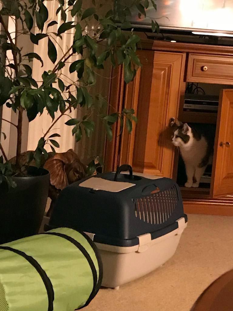 Bei der Ankunft bei uns, ist die Kleine gleich ins Katzenklo geflüchtet. Das hat sie dann auch, zu unserer Freude, sehr gut angenommen. Sie teilt sich das ganz toll mit Winni. Die erste Begegnung der beiden ist auch auf einem der Bilder zu sehen. Jetzt passen die beiden zusammen, wie Latsch und Bommel. :-)